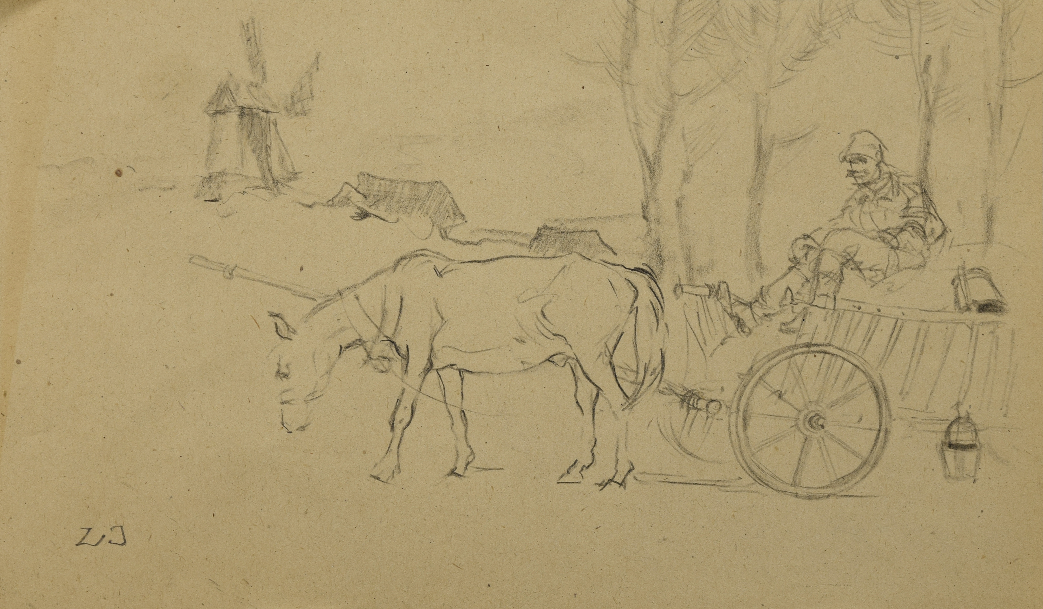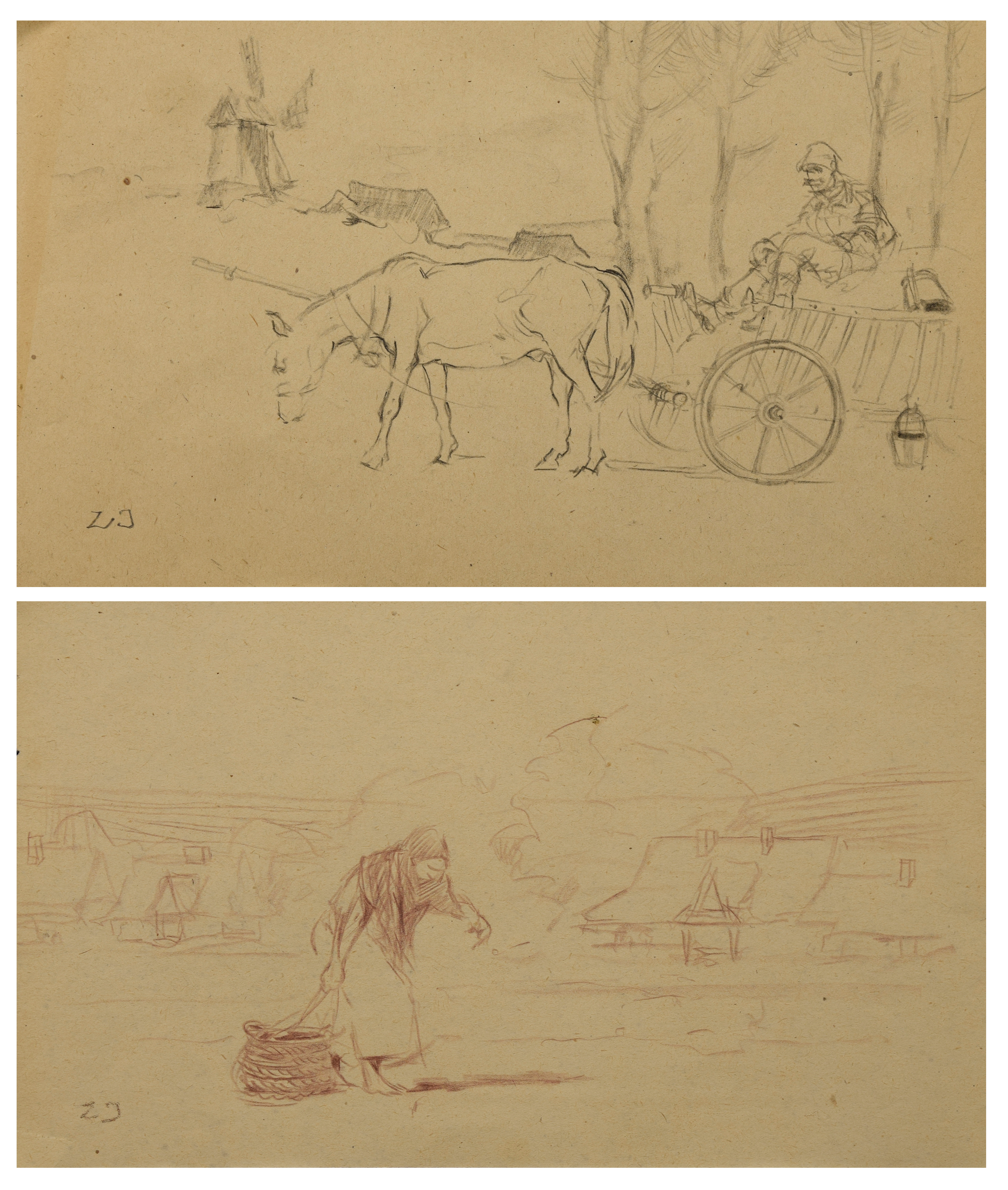 2. Postój - ołówek, papier; 16 x 26,7 cm; sygn. l. d.: ZJ.
