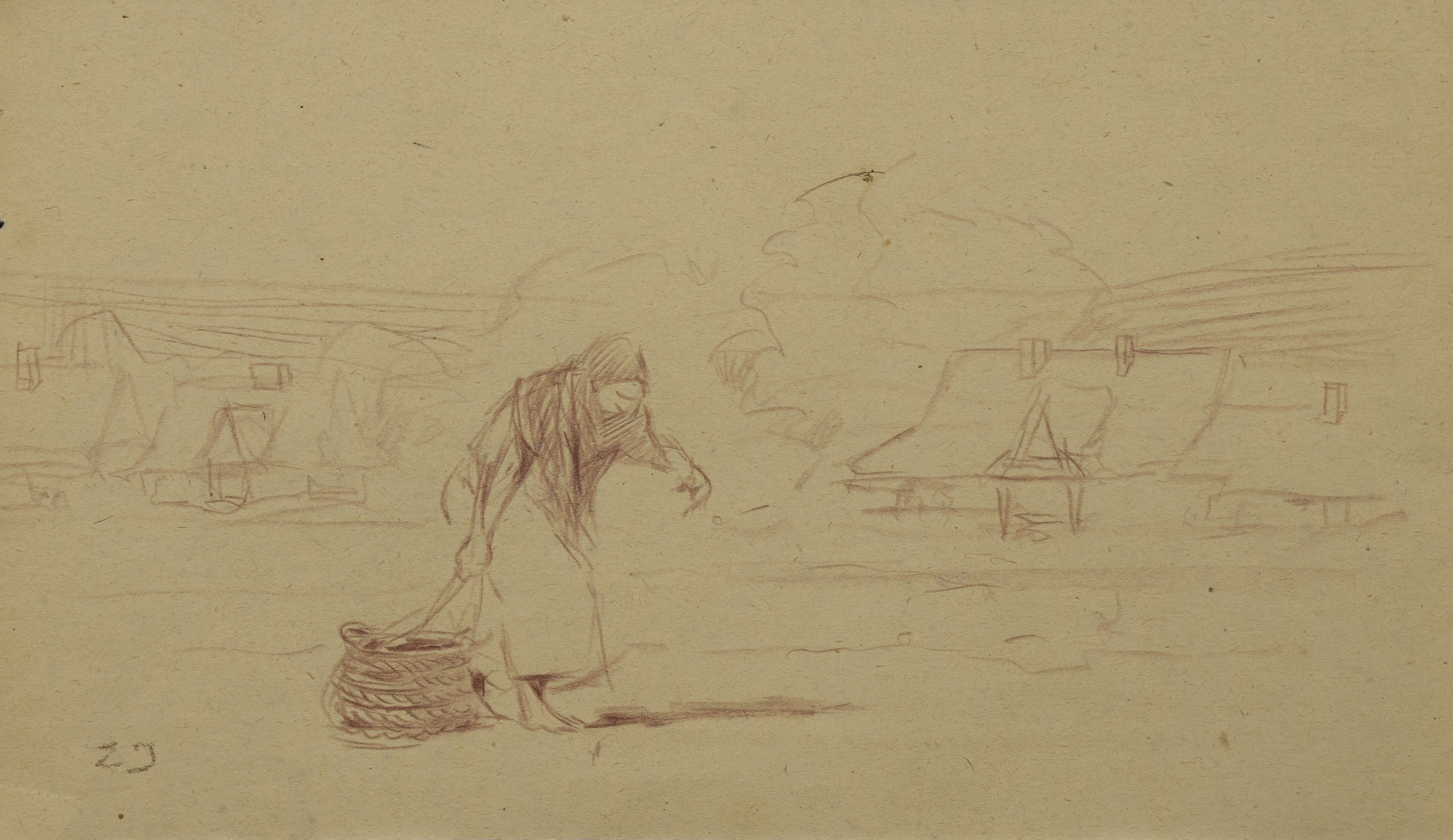 1. Kobieta w polu - sangwina, papier; 15,5 x 26,5 cm; sygn. l. d.: ZJ;
