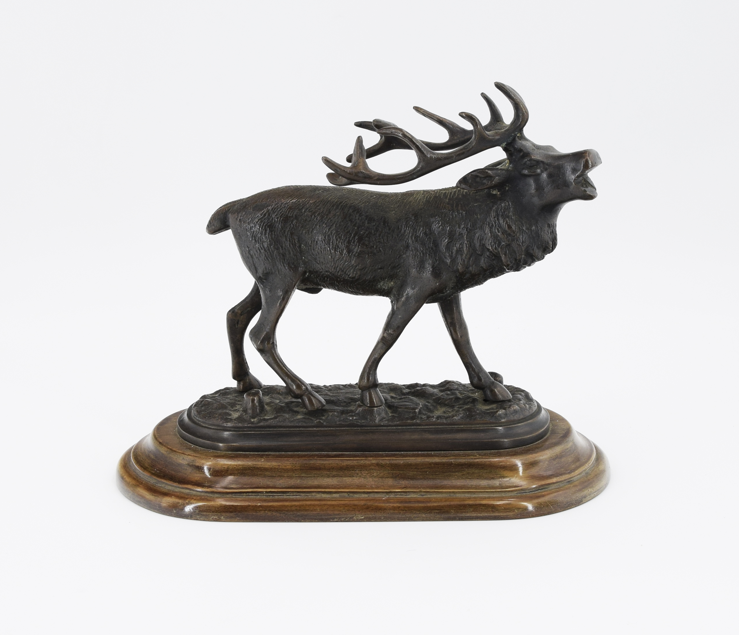 brąz, odlew patynowany; podstawa - drewno; wys. 19 cm; szer. 22,5 cm;