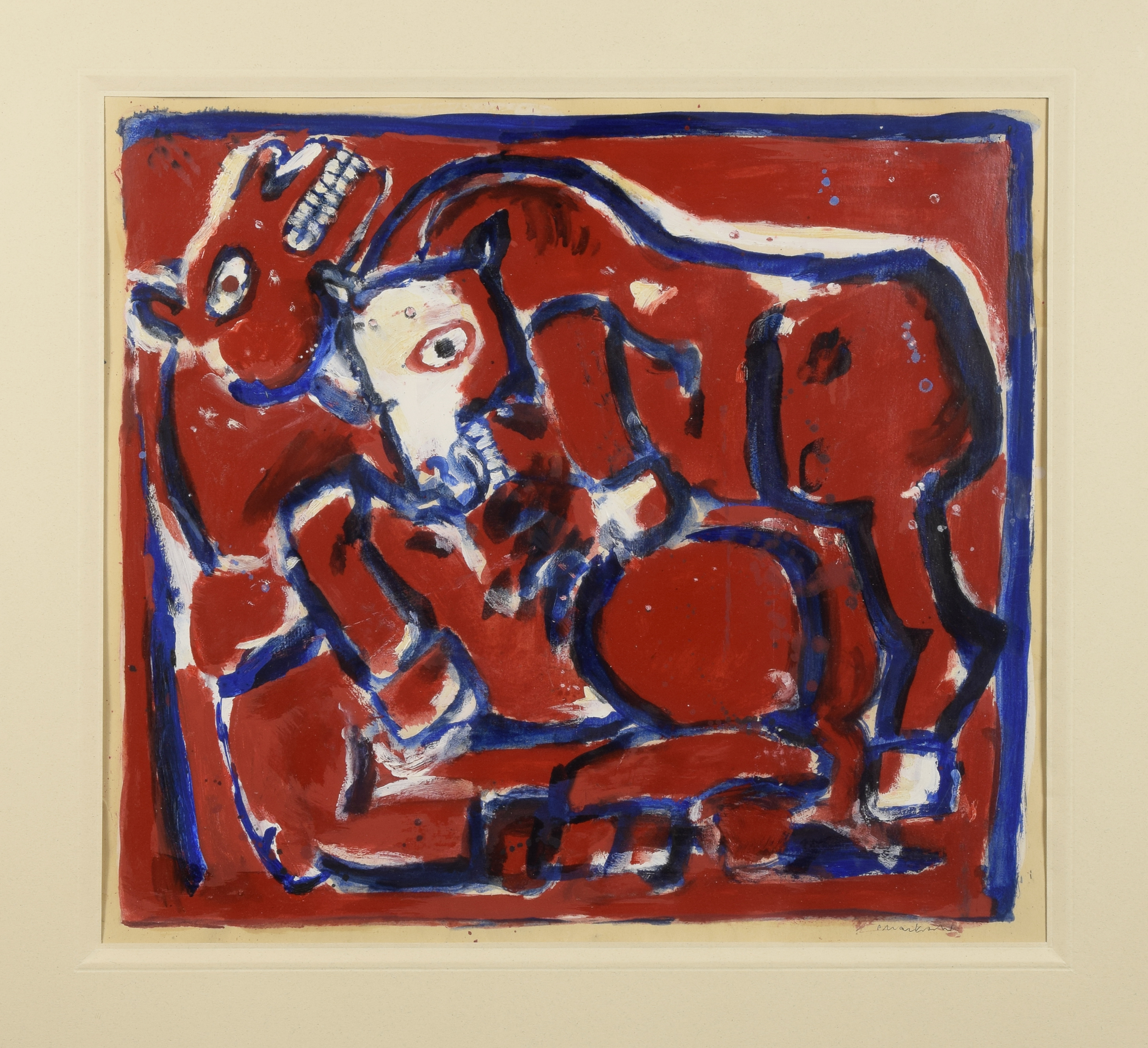 olej, tektura; 49 x 52 cm (w świetle passe-partout);