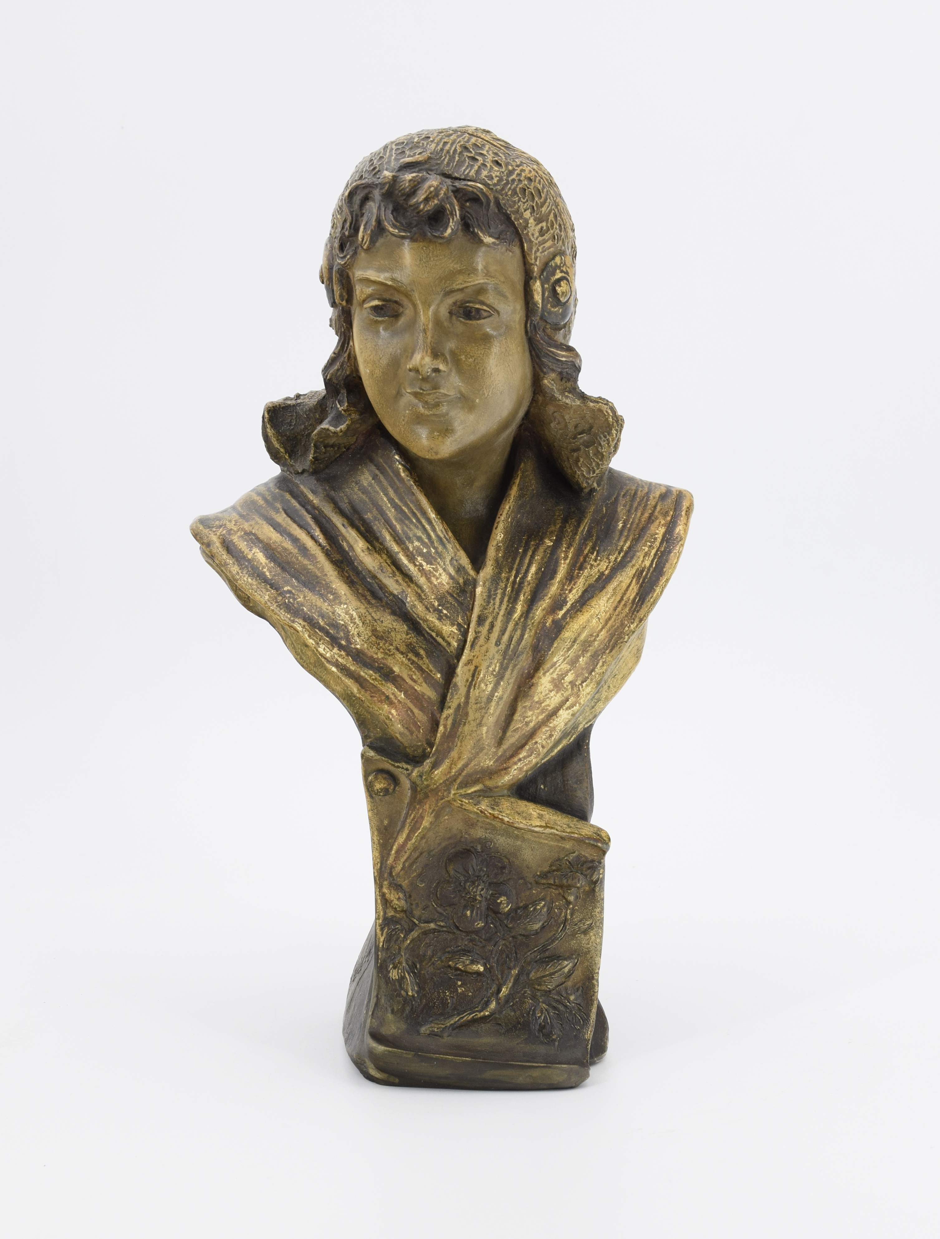 terakota patynowana w kolorze złoconego brązu, polichromowana;