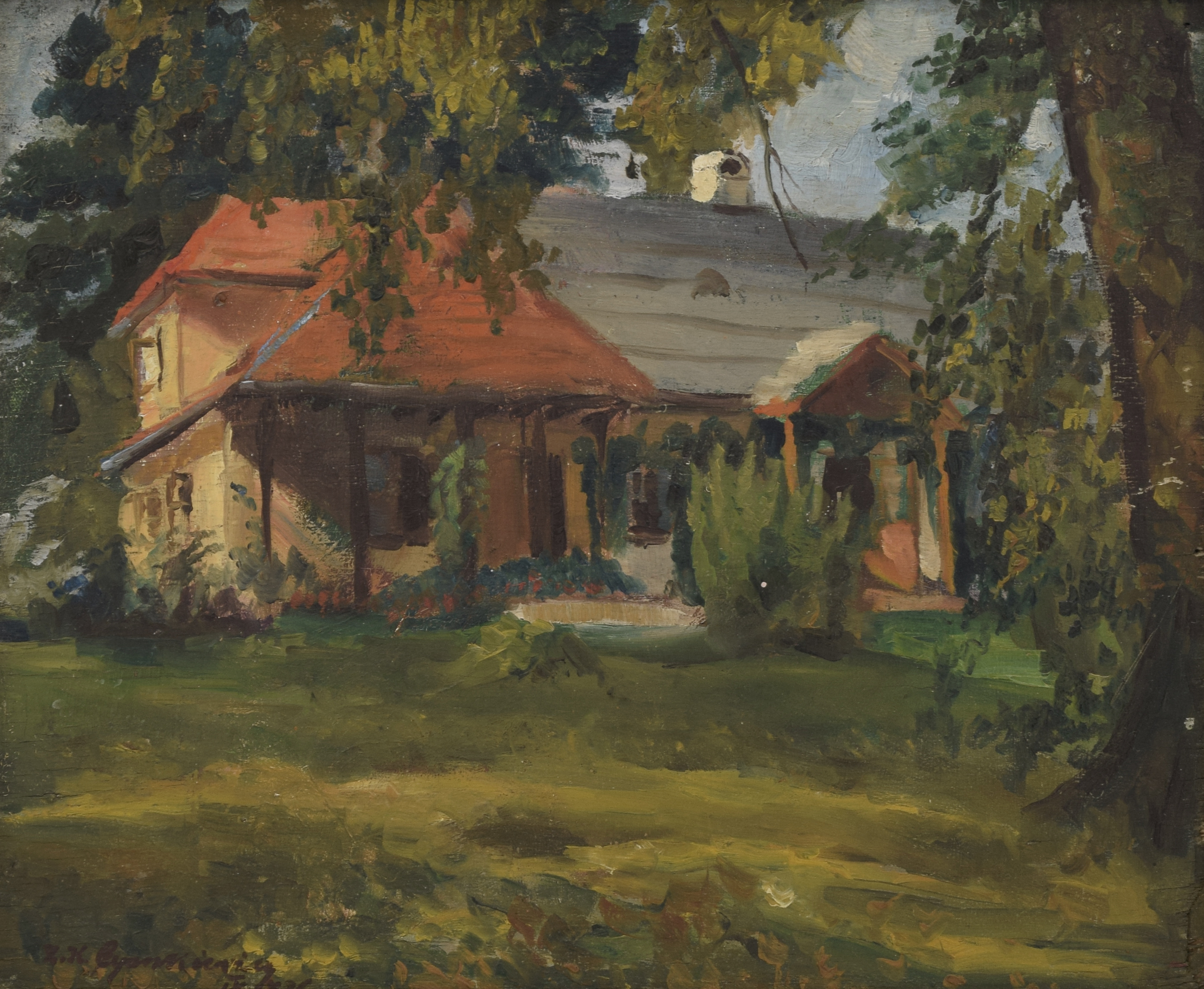 olej, sklejka; 28,5 x 35 cm;