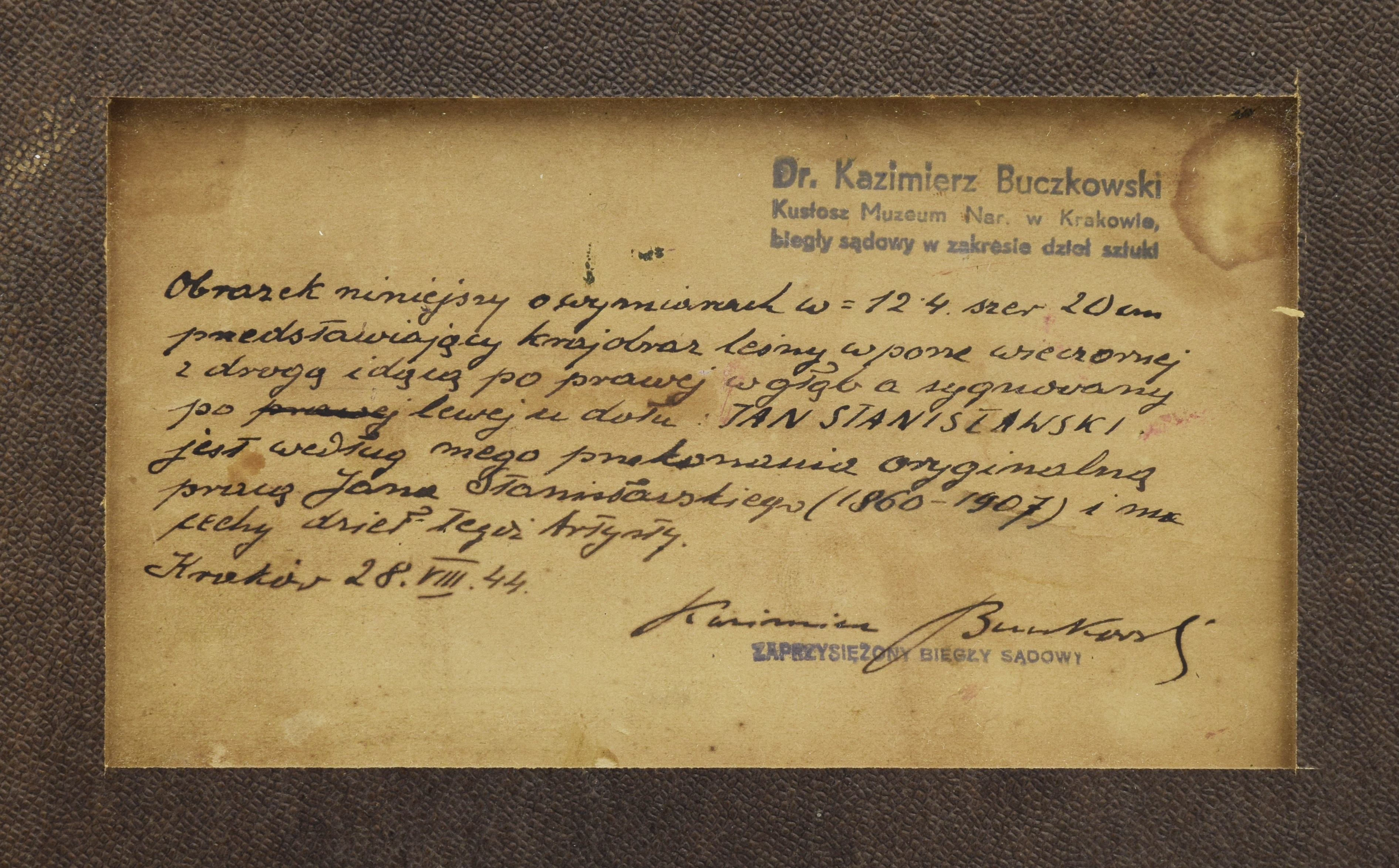 na odwrocie potwierdzenie autentyczności z 28.VIII.1944 dra Kazimierza Buczkowskiego.