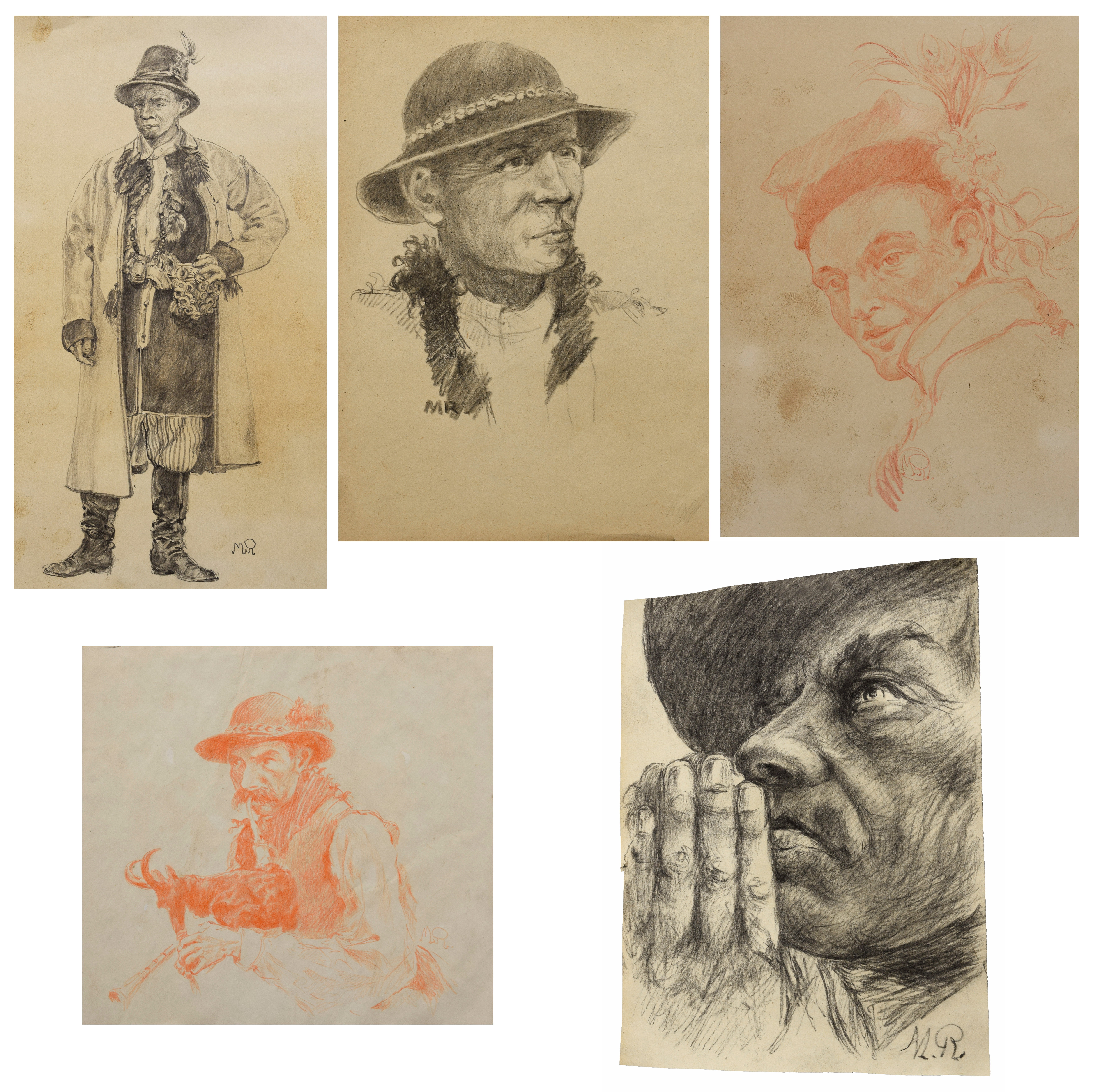 Zestaw 5 rysunków - Górale