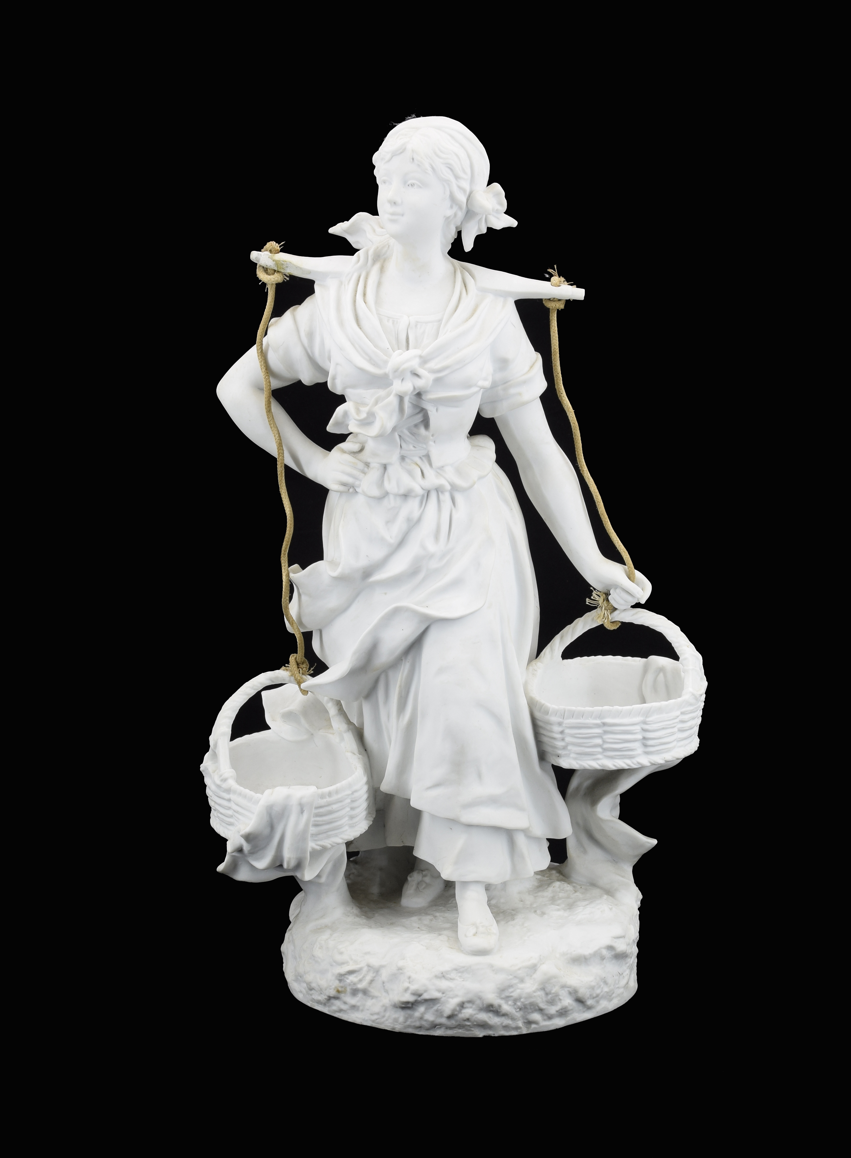 biskwit porcelany, sznurek; wys. ok. 49 cm;