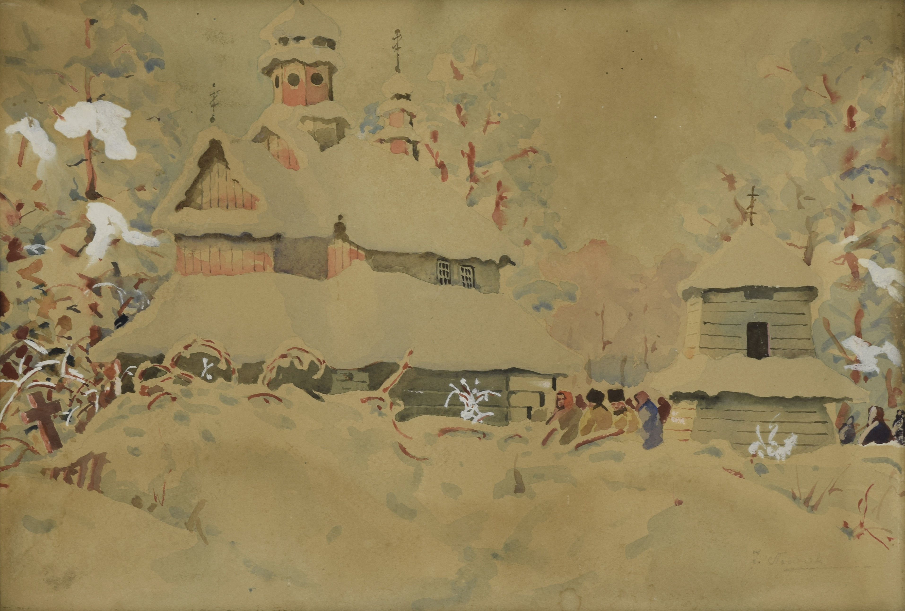 akwarela na podrysowaniu ołówkiem, tektura; 34 x 49,5 cm;