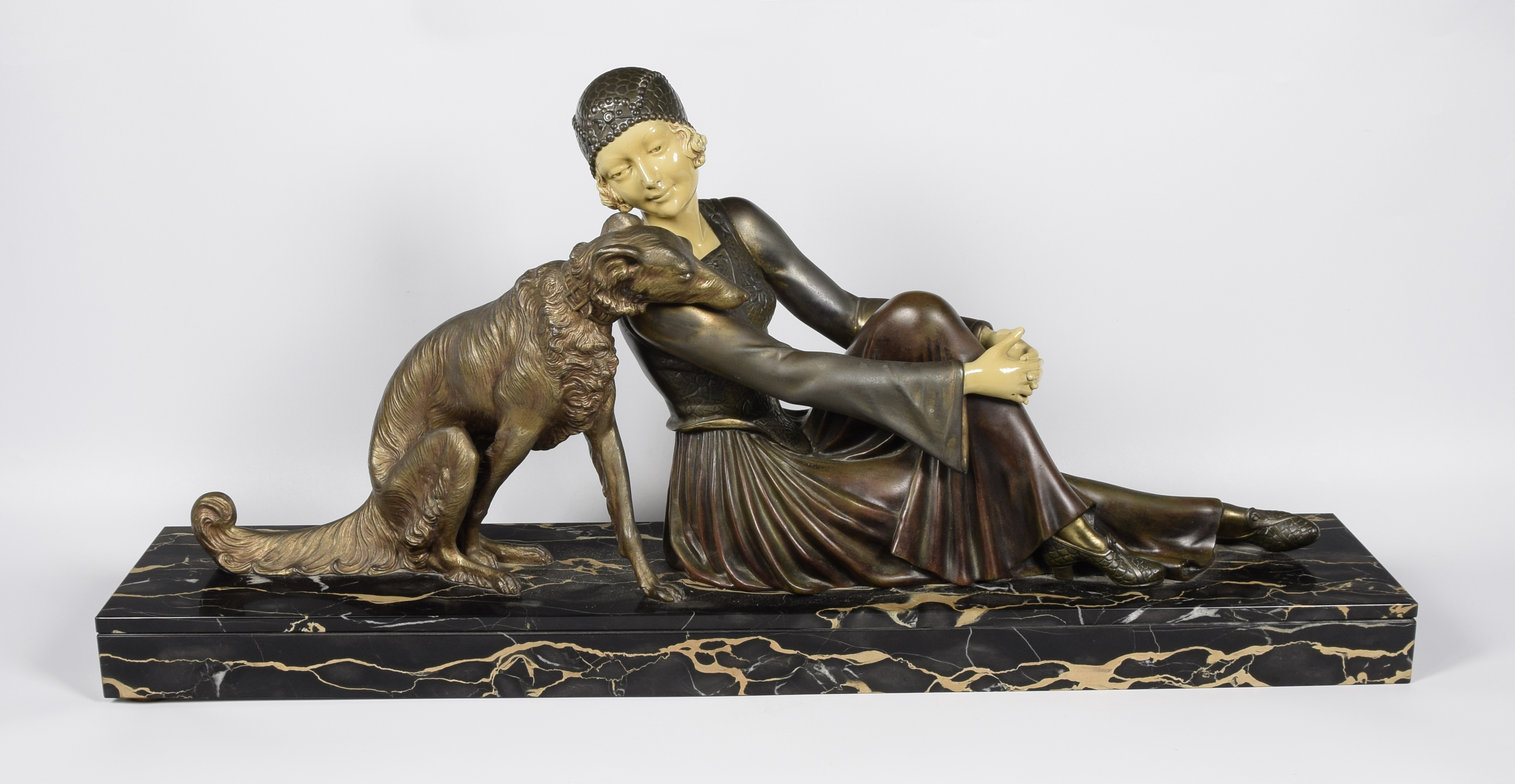 brąz patynowany, częściowo złocony; biała iworyna (dłonie, twarz), podstawa - marmur;