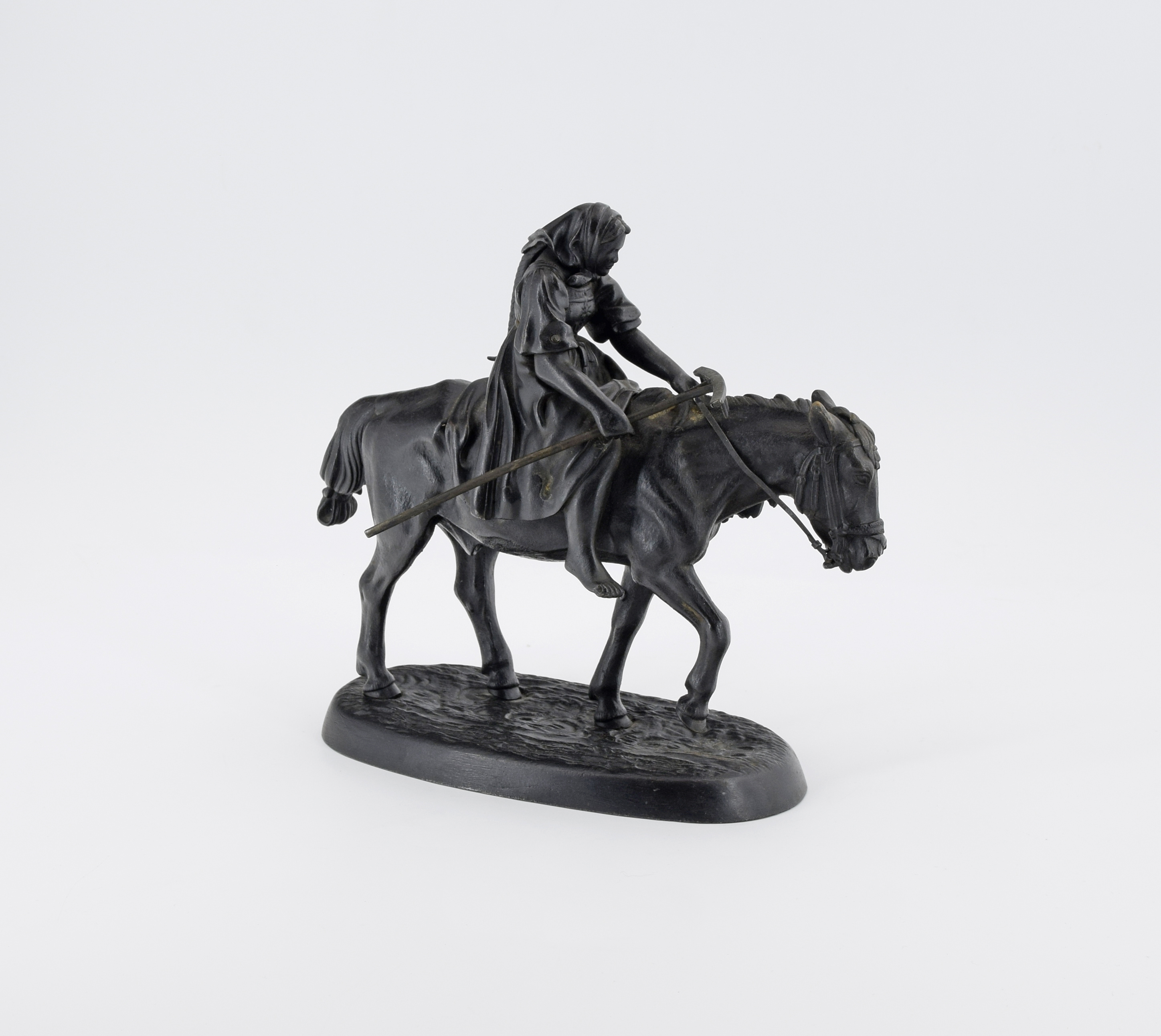 żeliwo, odlew, patyna czarna; wys. 21 cm, dł. 23,5 cm, szer. 11 cm;