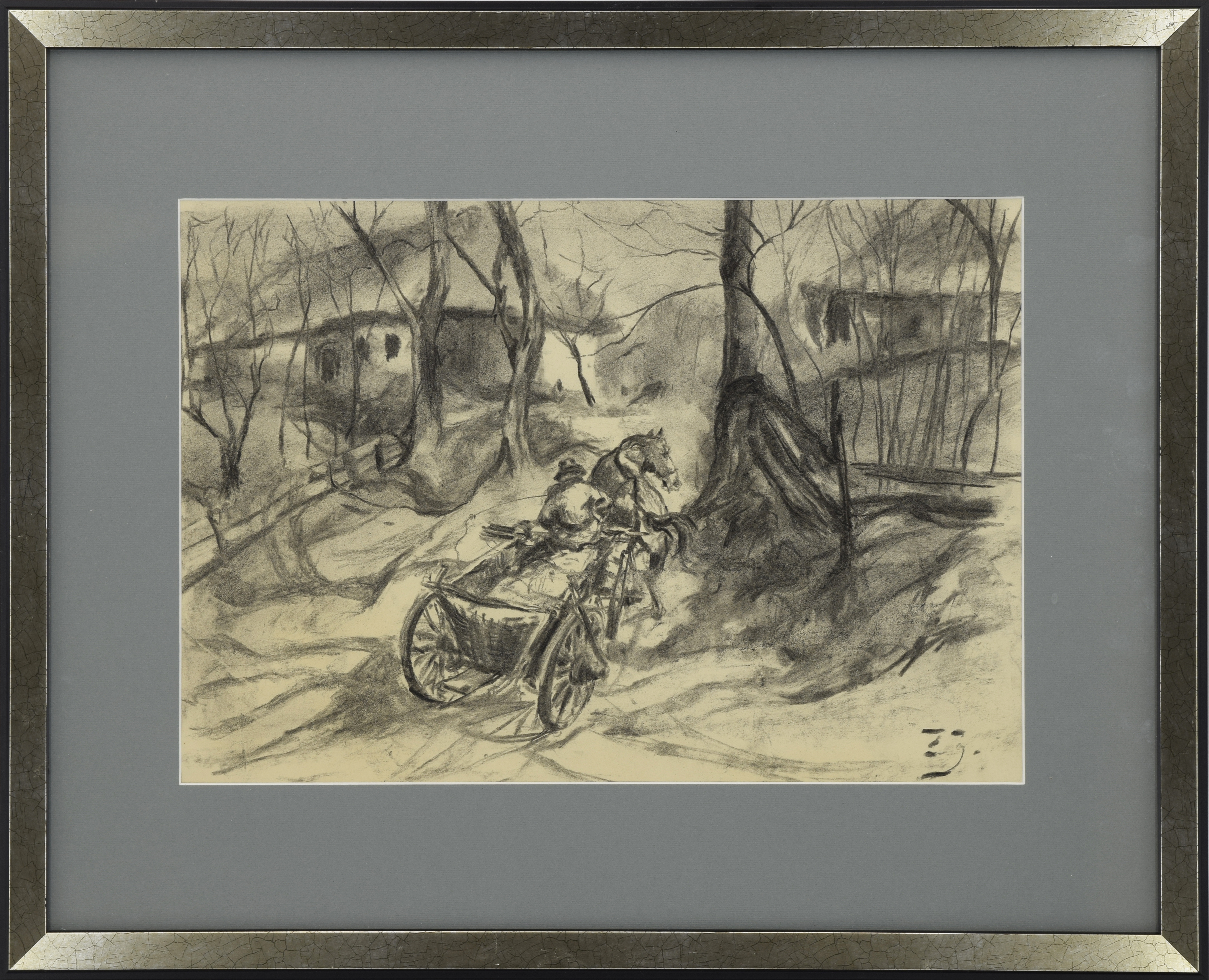węgiel, papier; 26 x 37,5 cm (w świetle oprawy);