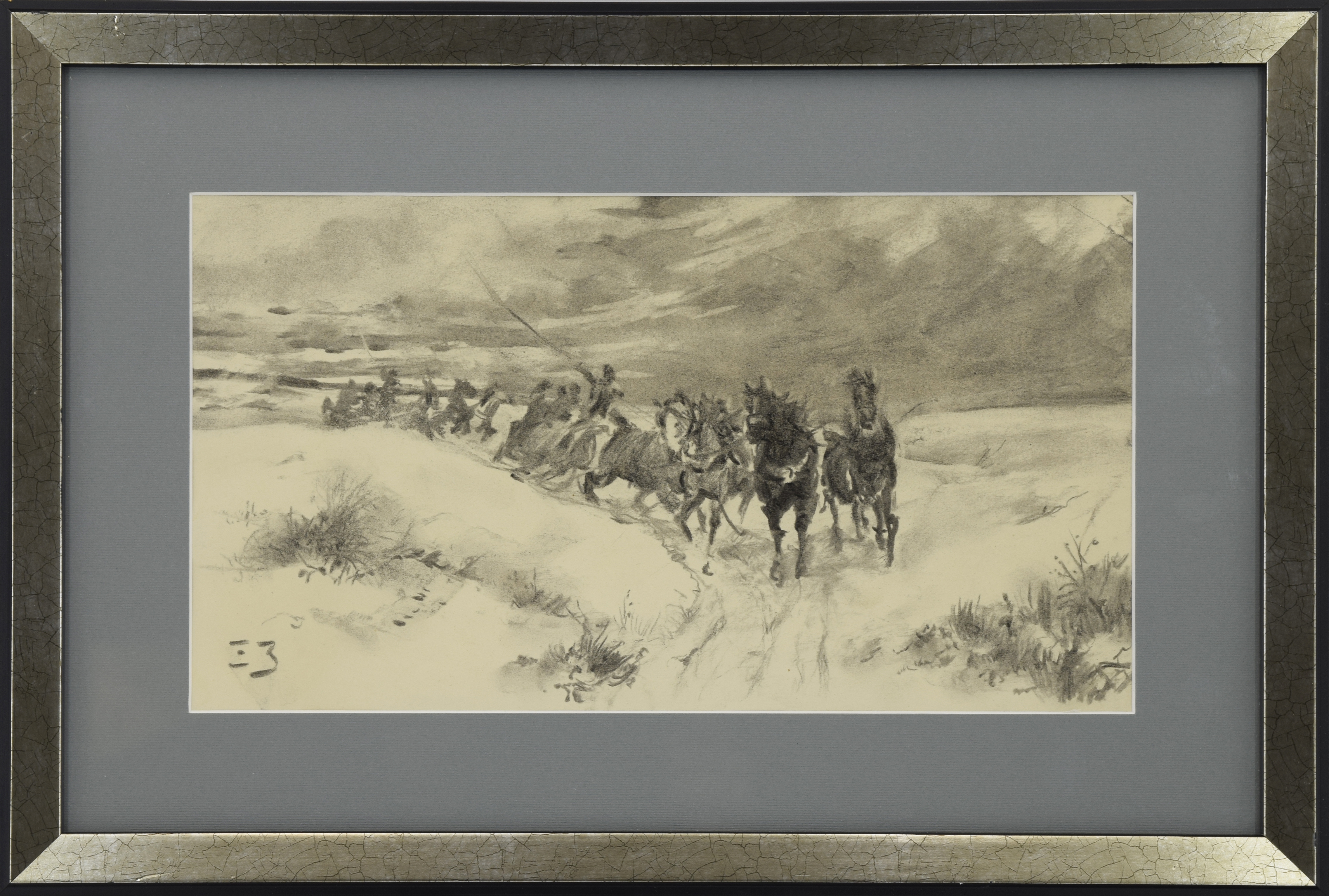 węgiel, papier; 17 x 31 cm (w świetle oprawy);