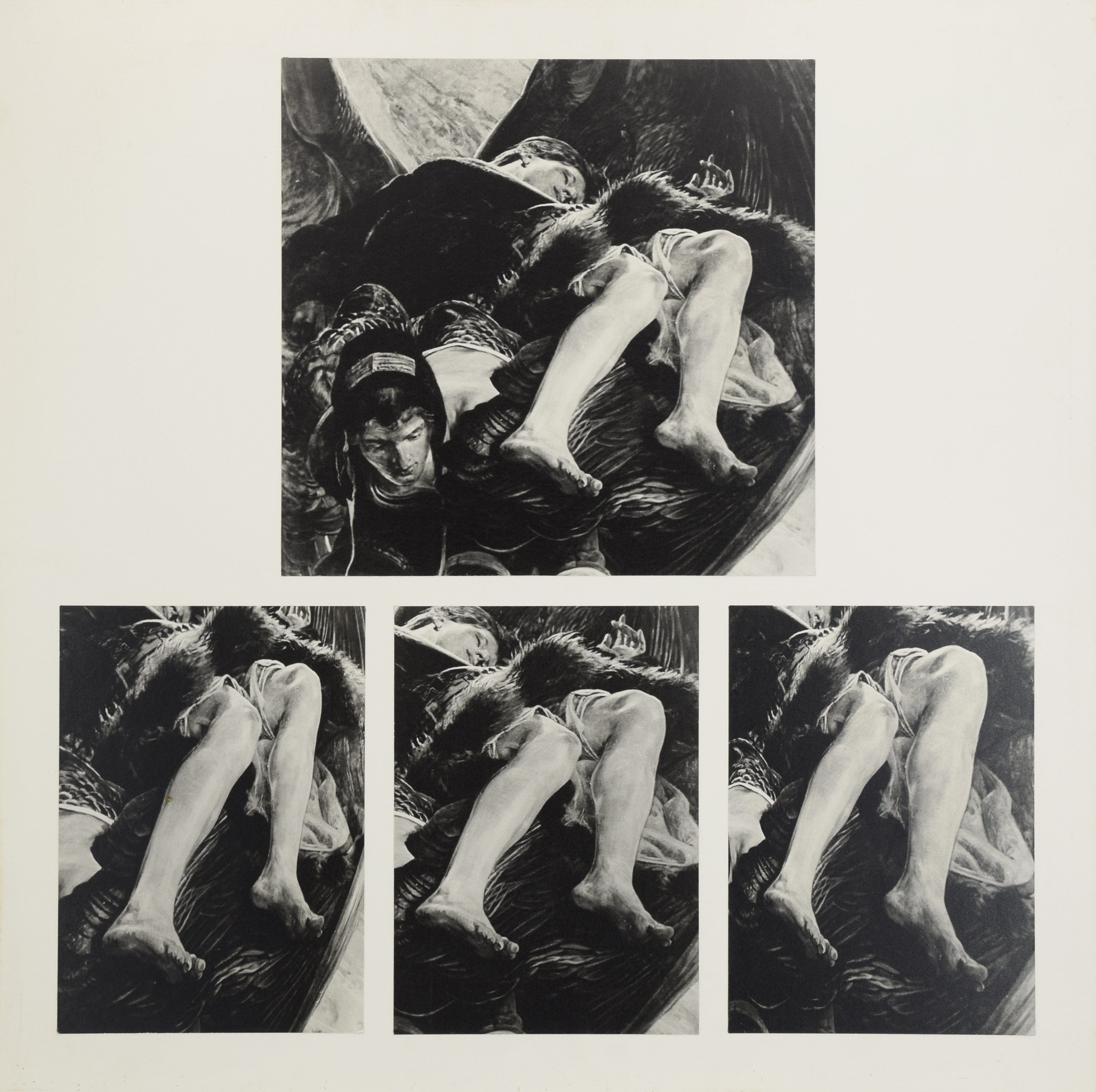 fotografia naklejona na blachę aluminiową zaklejoną papierem; 60 x 60 cm (wymiar blachy); 23,3 x 16,5 cm (wymiar 3 fotografii); 28 x 29 cm (wymiar jednej fotogr