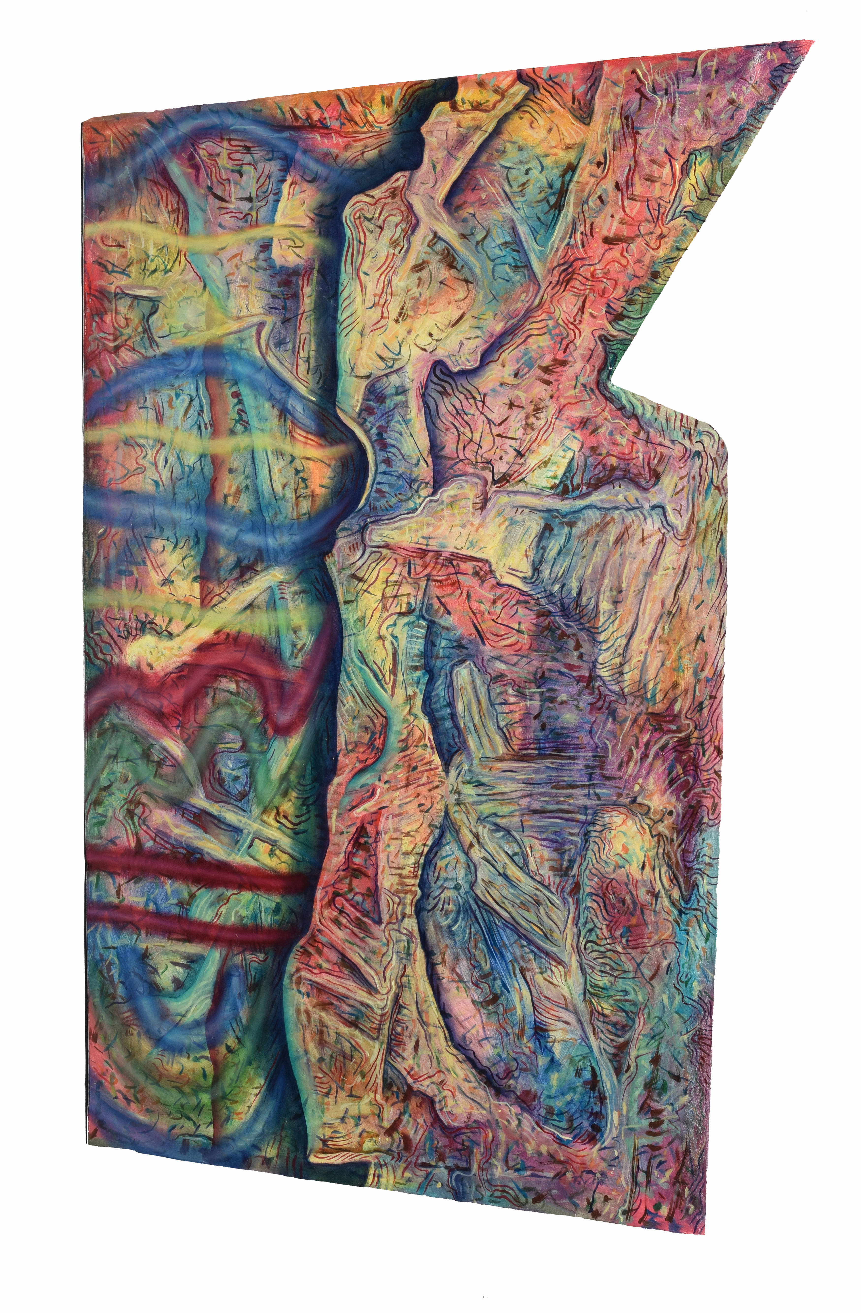 olej, płótno; 117 x 72 cm (płótno o nieregularnym kształcie); sygn., dat. i opisany na odwrocie: Ziemowit Fincek / 2021 / "Wizja z falami." / 117x70x3 cm.