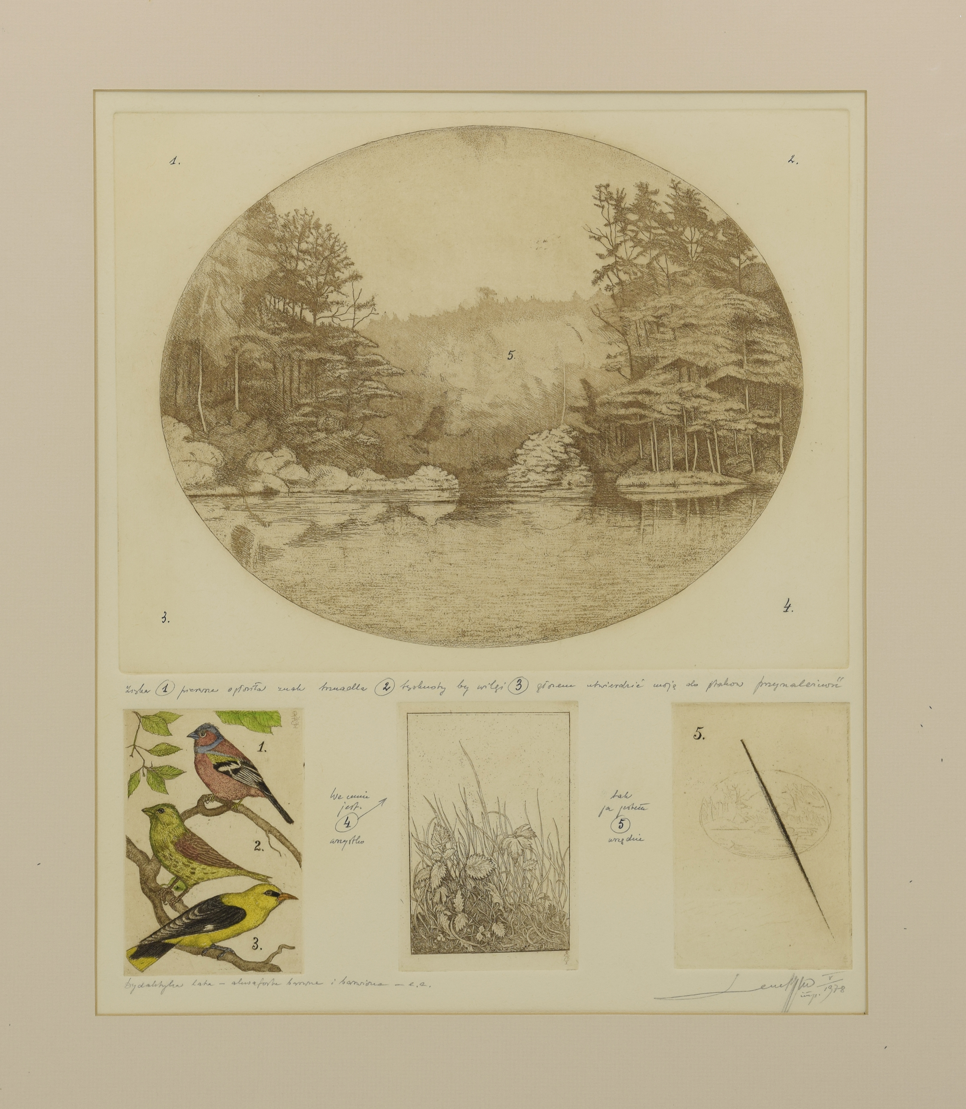 akwaforta barwna, papier; 41 x 34 cm (wymiar arkusza z 4 kompozycjami w świetle oprawy);