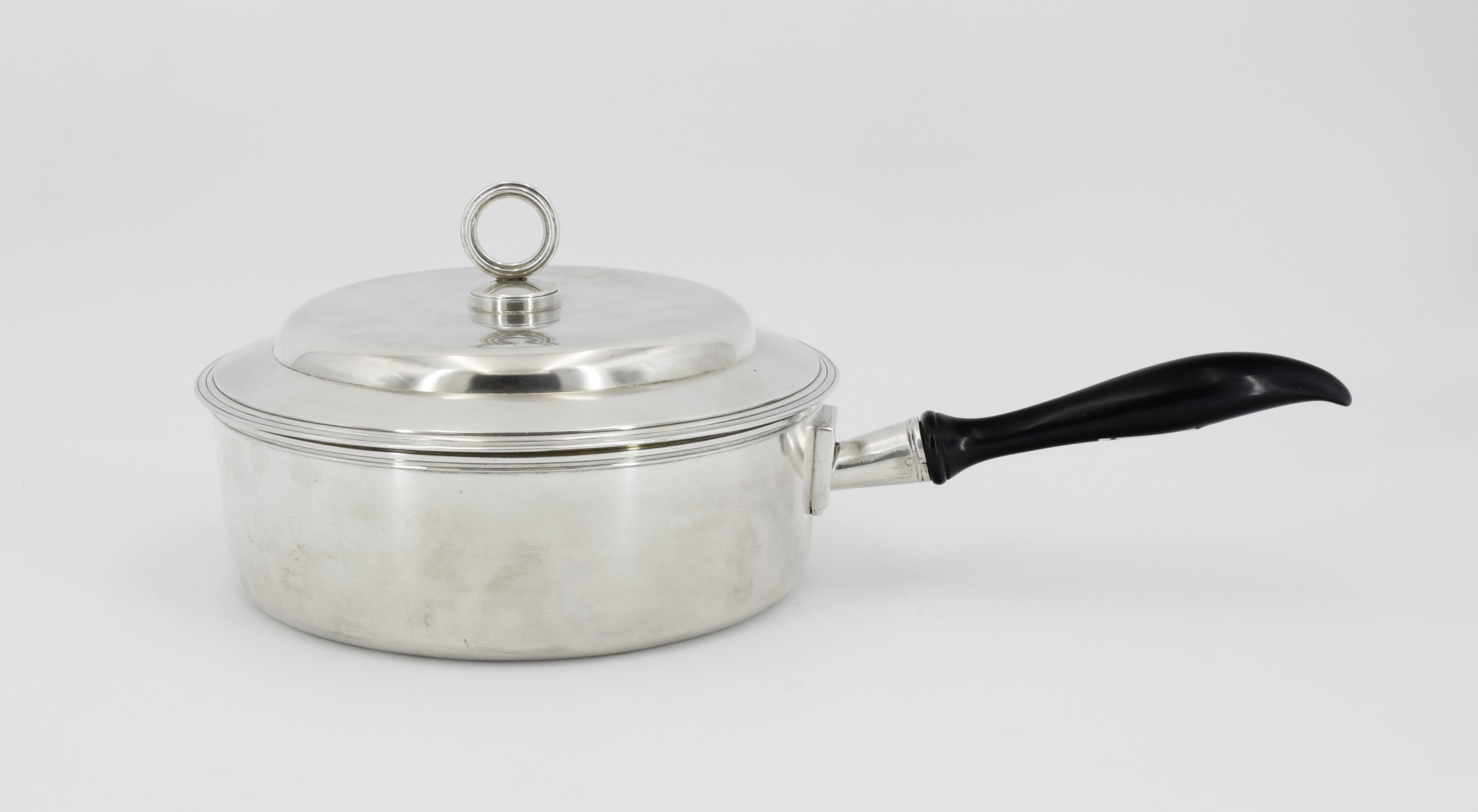srebro próby 12 częściowo złocone cechowane, drewno czernione; wys. 9 cm; średn. 21,5 cm;