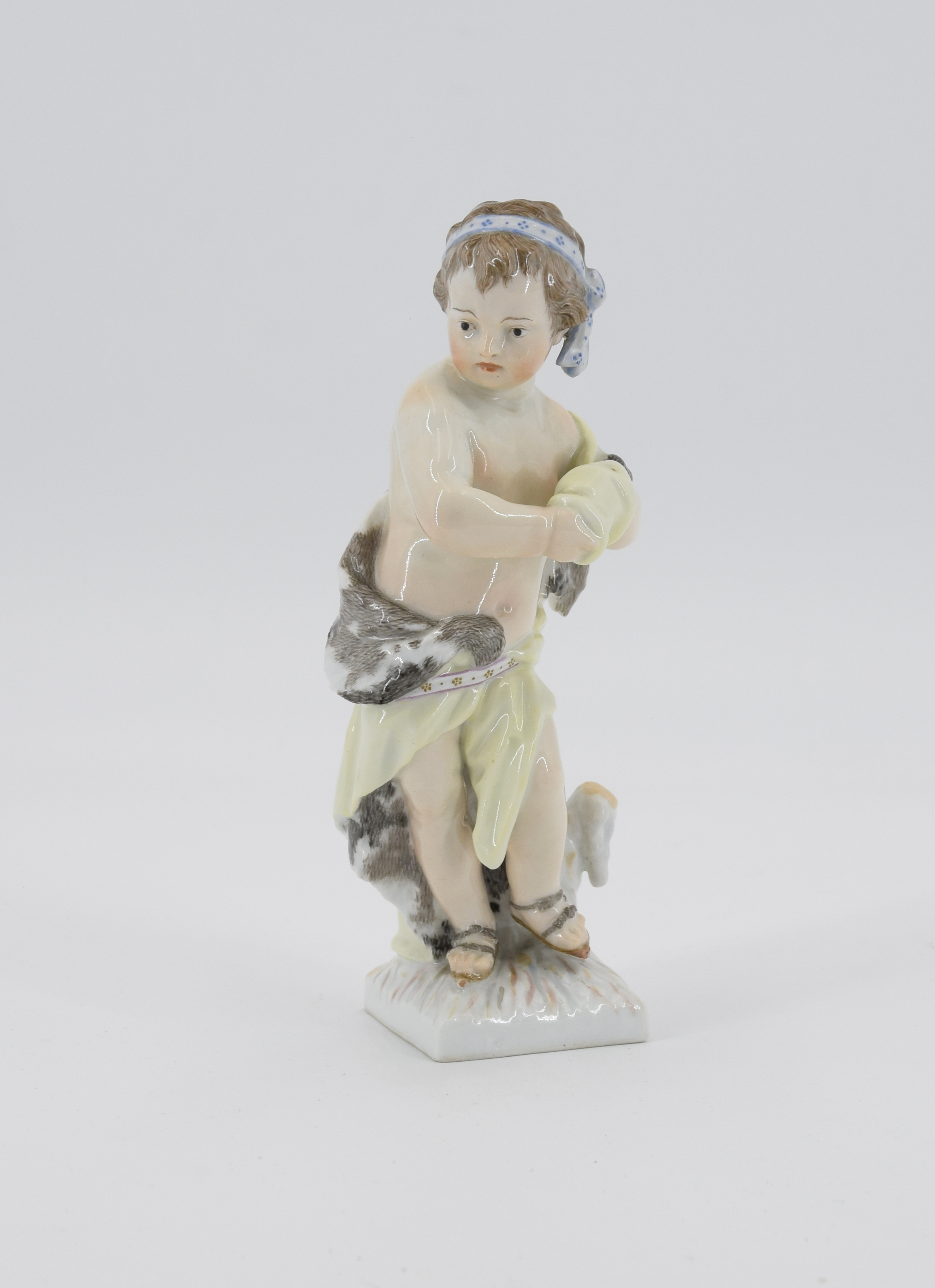 Chłopiec na łyżwach, w draperii podbitej futrem- alegoria Zimy?