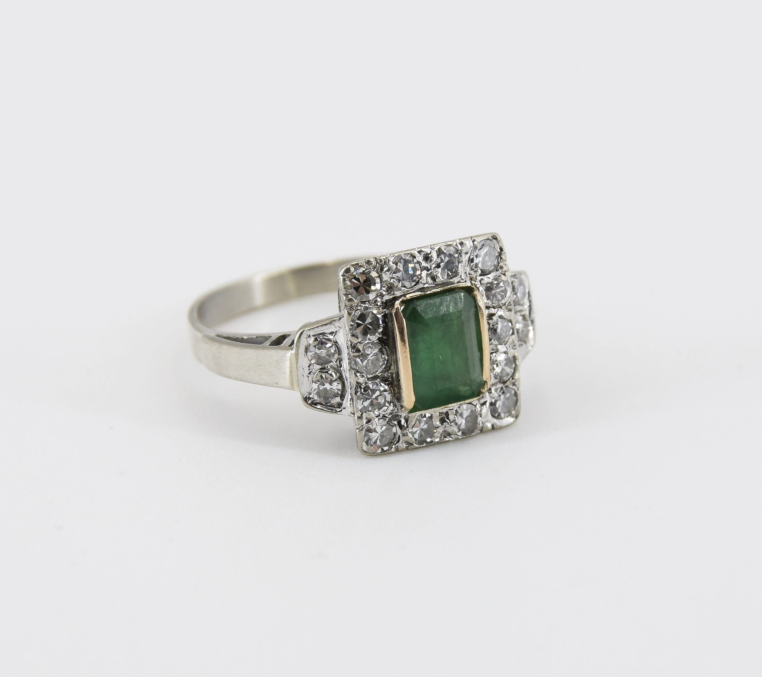 prostokątny szmaragd o masie ok.1.10 ct oraz 18 szt. diamentów w szlifie 8/8;