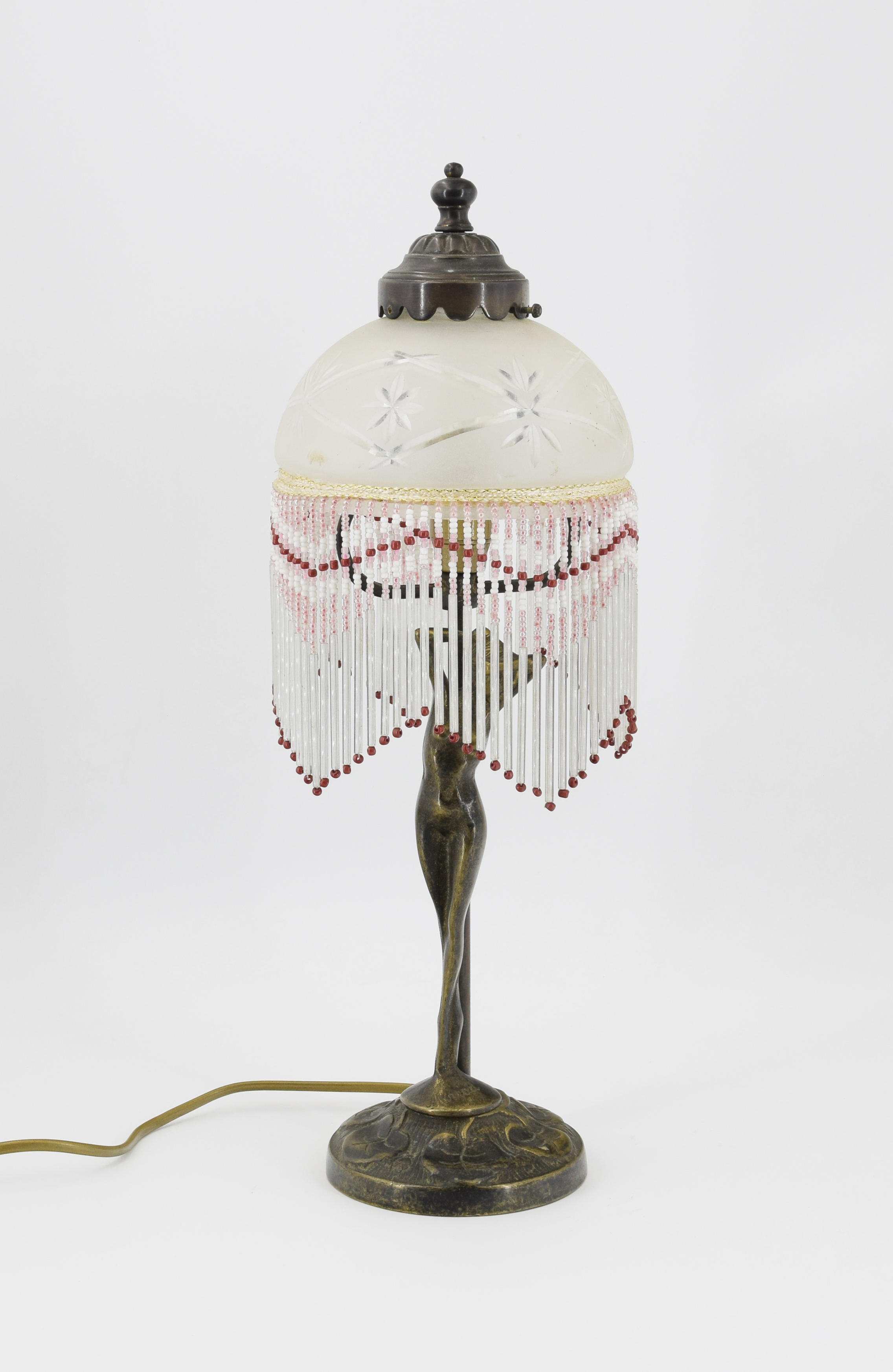 brąz, szkło, koraliki; wys. 43,5 cm.