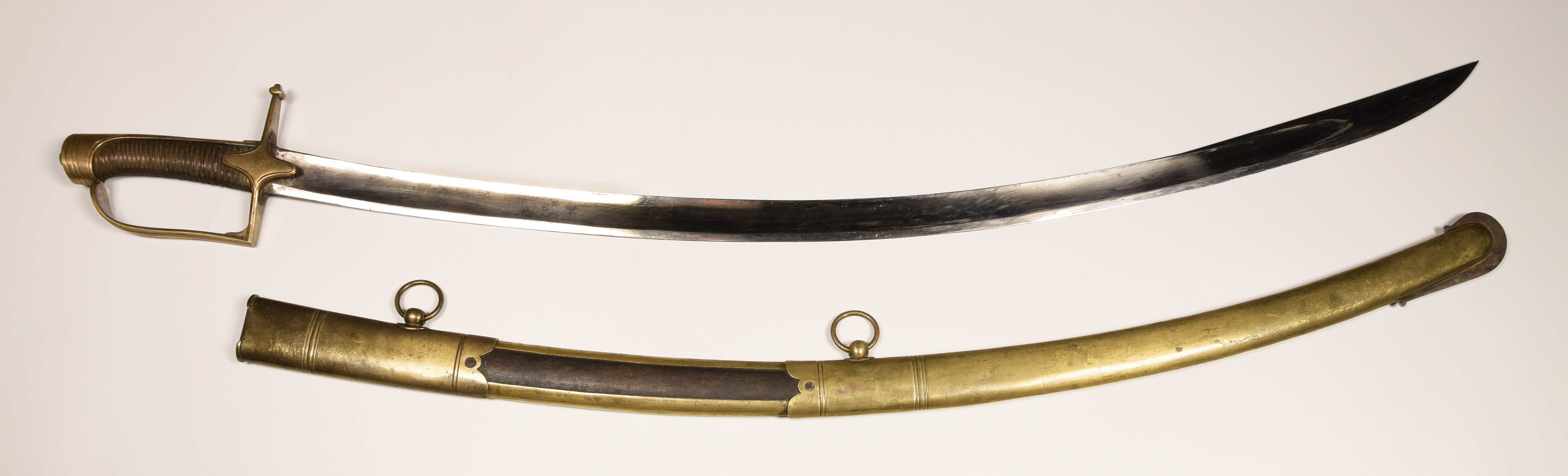 stal, mosiądz, drewno, skóra; dł. 103 cm; dł. całk. w pochwie 104,5 cm;