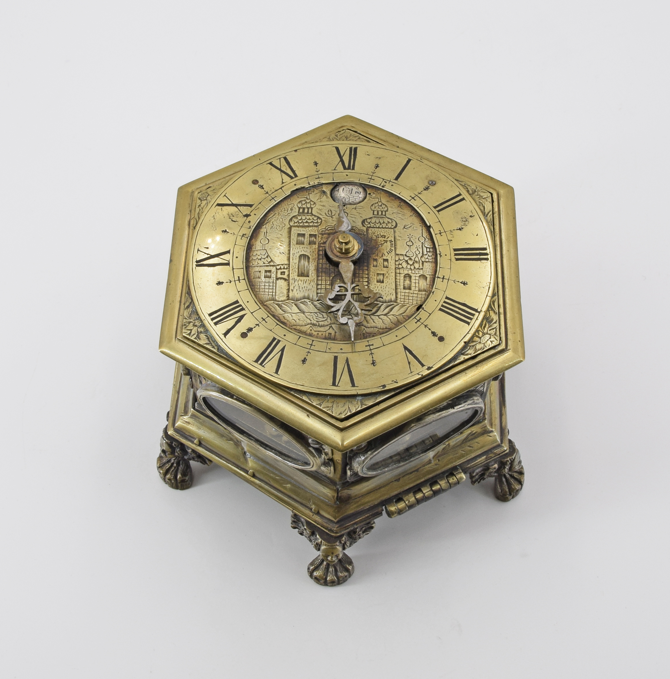 Grawerowana sygnatura „Cas Wein Pos” to zapewne skrót imienia, nazwiska i miasta. Można ją łączyć z Casperem Weinhardtern (synem poznańskiego zegarmistrza Baltazara Weinhardta), który został odnotowany na początku swojej mistrzowskiej kariery w 1659 r. [Eckhardt 1956, s. 216].