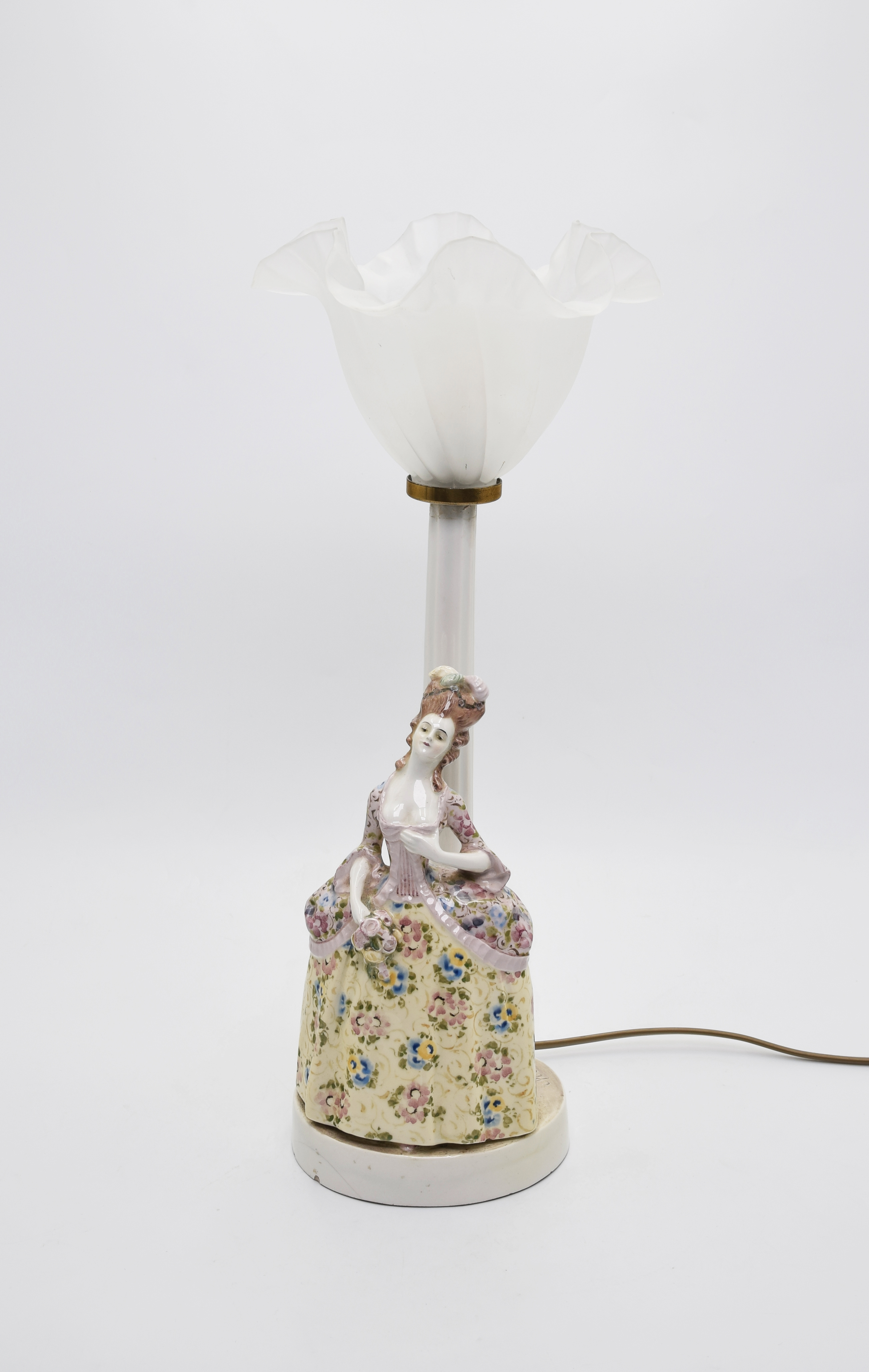 fajans delikatny, farby ceramiczne, wys. (z abażurem) 40,5 cm;