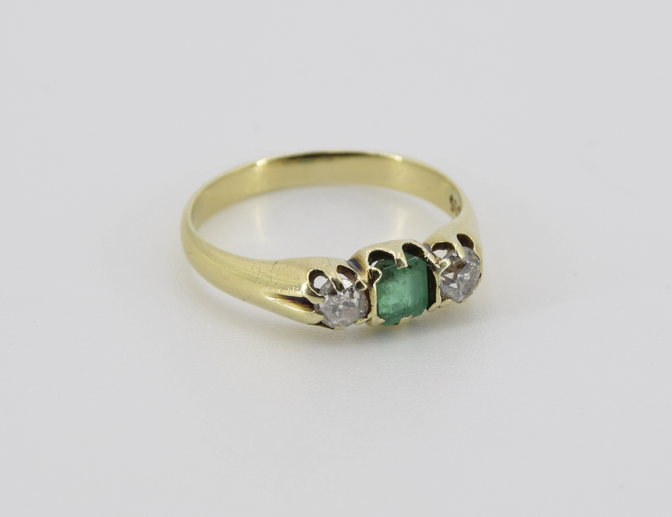 szmaragd o masie ok. 0.38 ct oraz 2 szt. brylantów o masie łącznej ok.0.38 ct (P/H),