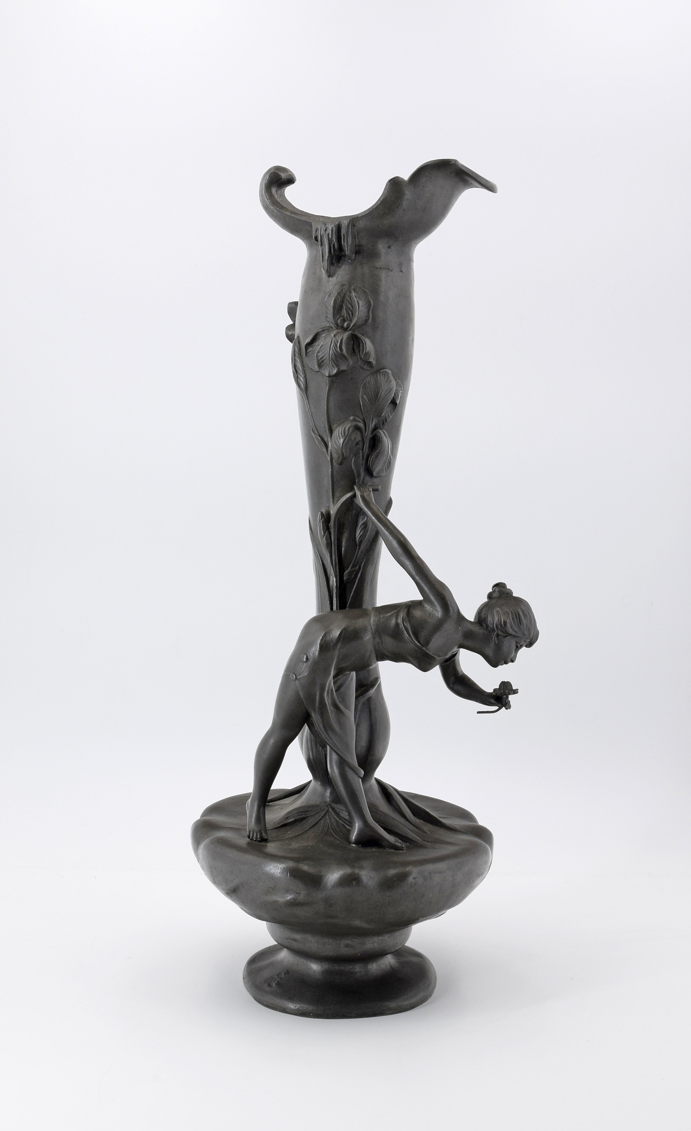 cyna; wys. 49,5 cm; sygn. z boku na brzuścu: „WHering”; oznaczenia na spodzie.