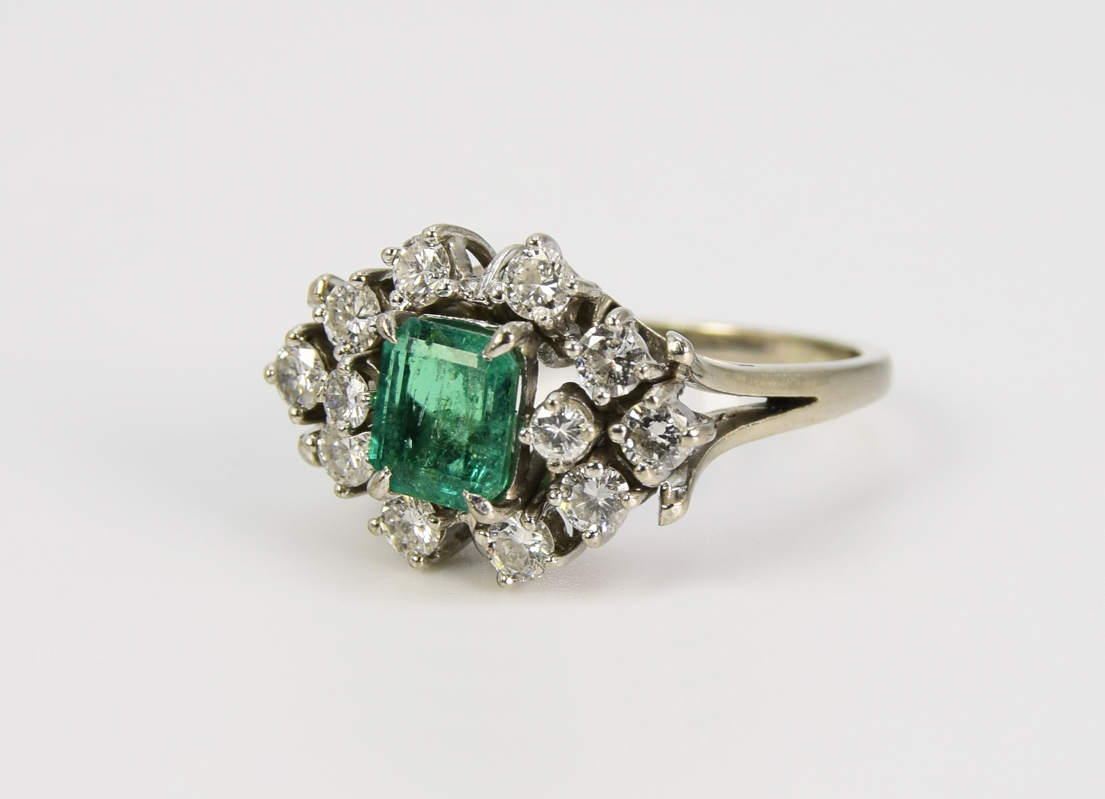 prostokątny szmaragd w otoczeniu 12 szt. brylantów;