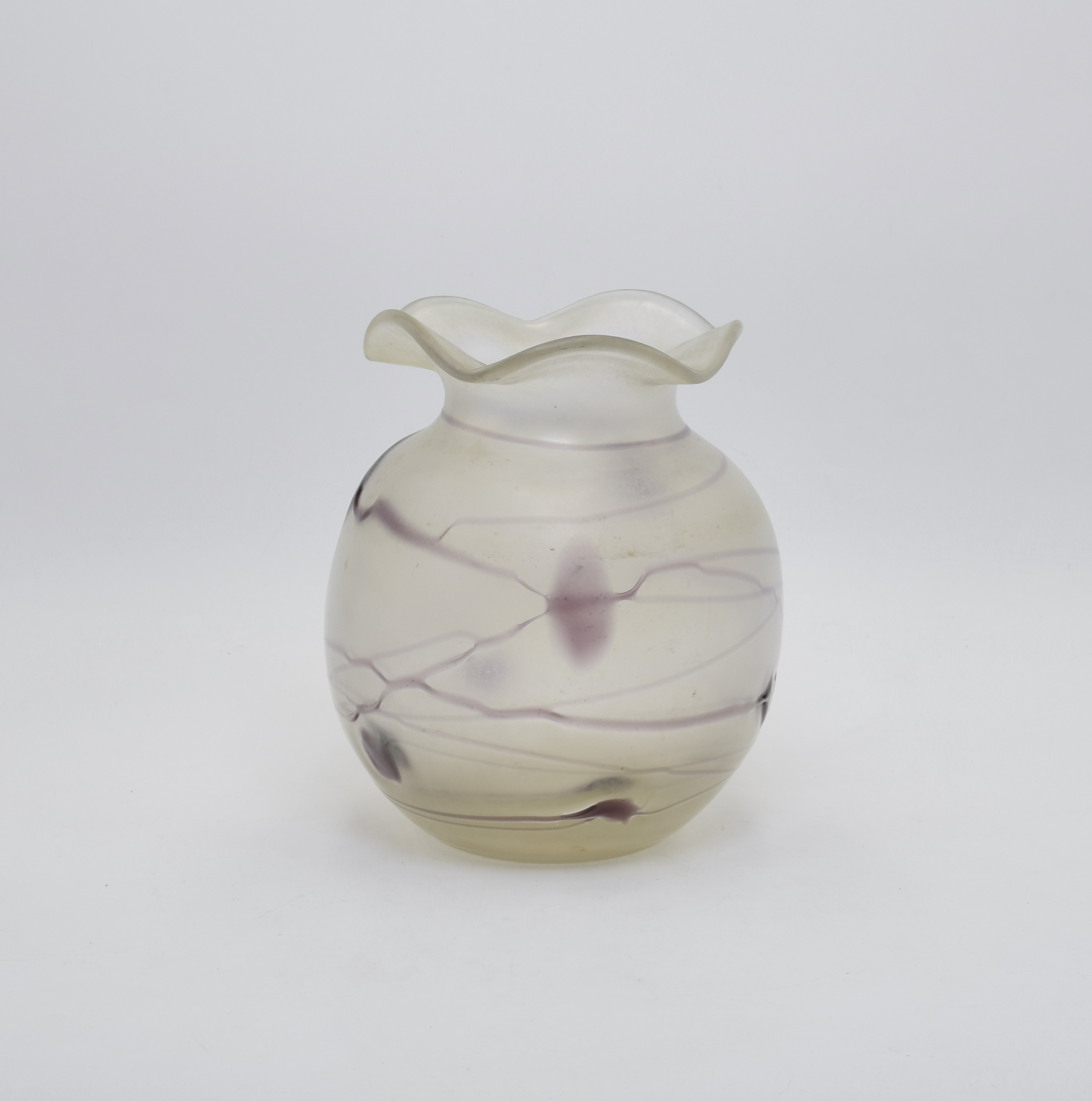 szkło przeźroczyste, iryzujące, matowione, barwione proszkami, nitkowane; wys. 19 cm.