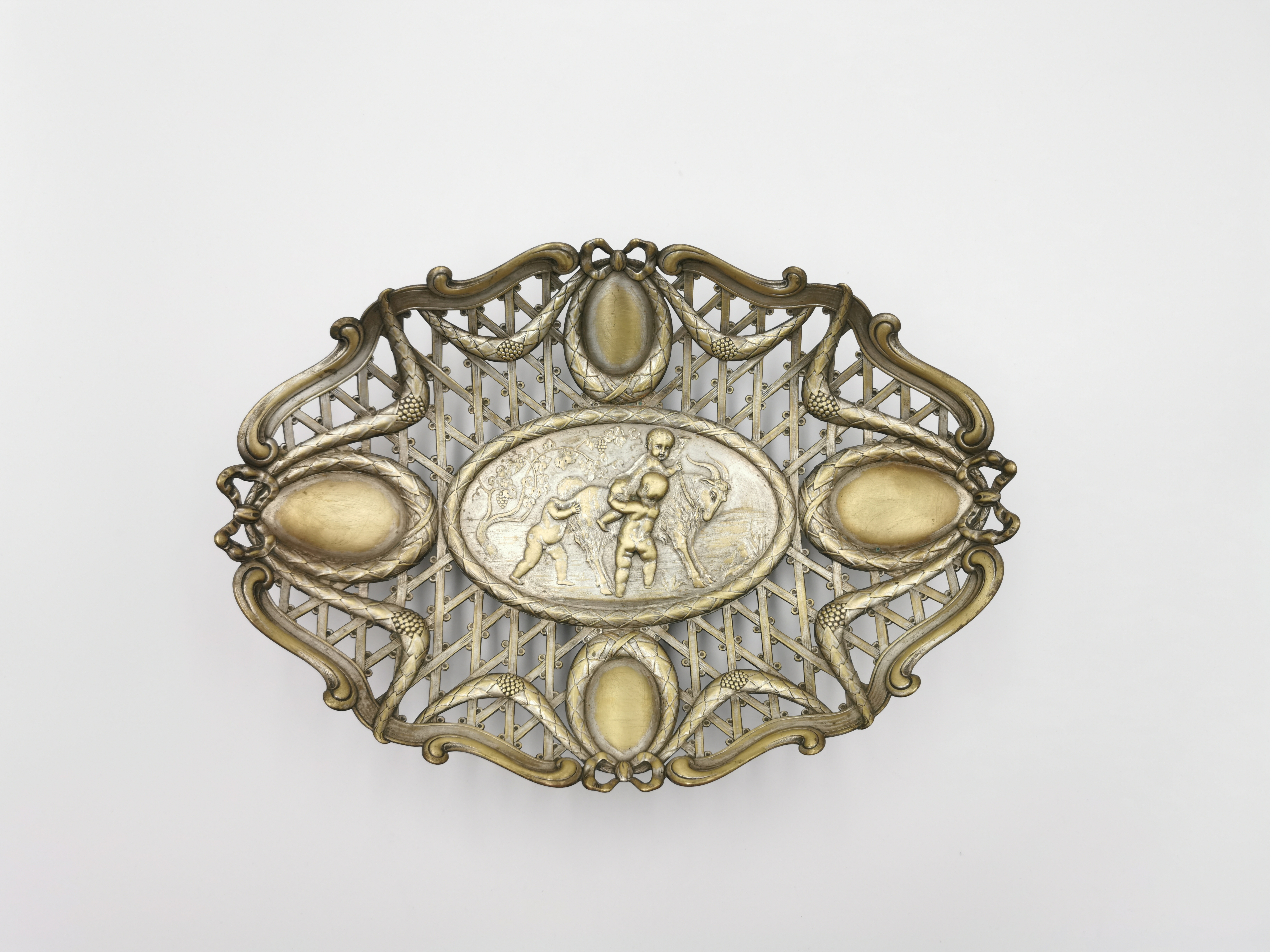 plater cechowany (ox, znak i monogram wytwórni, I/o); wys. 7,5 cm, szer. 35 cm, głęb. 24 cm;