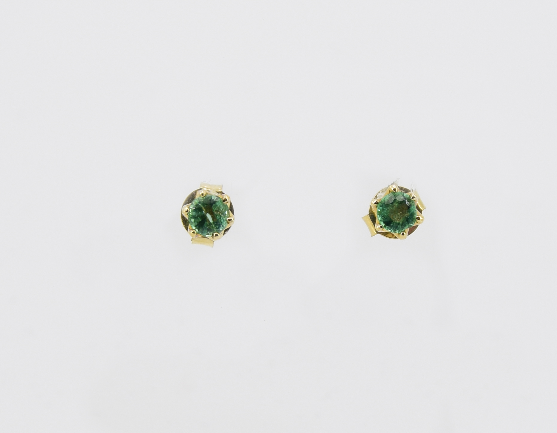 2 szt. okrągłych szmaragdów o masie łącznej ok. 0.45 ct w oprawie,