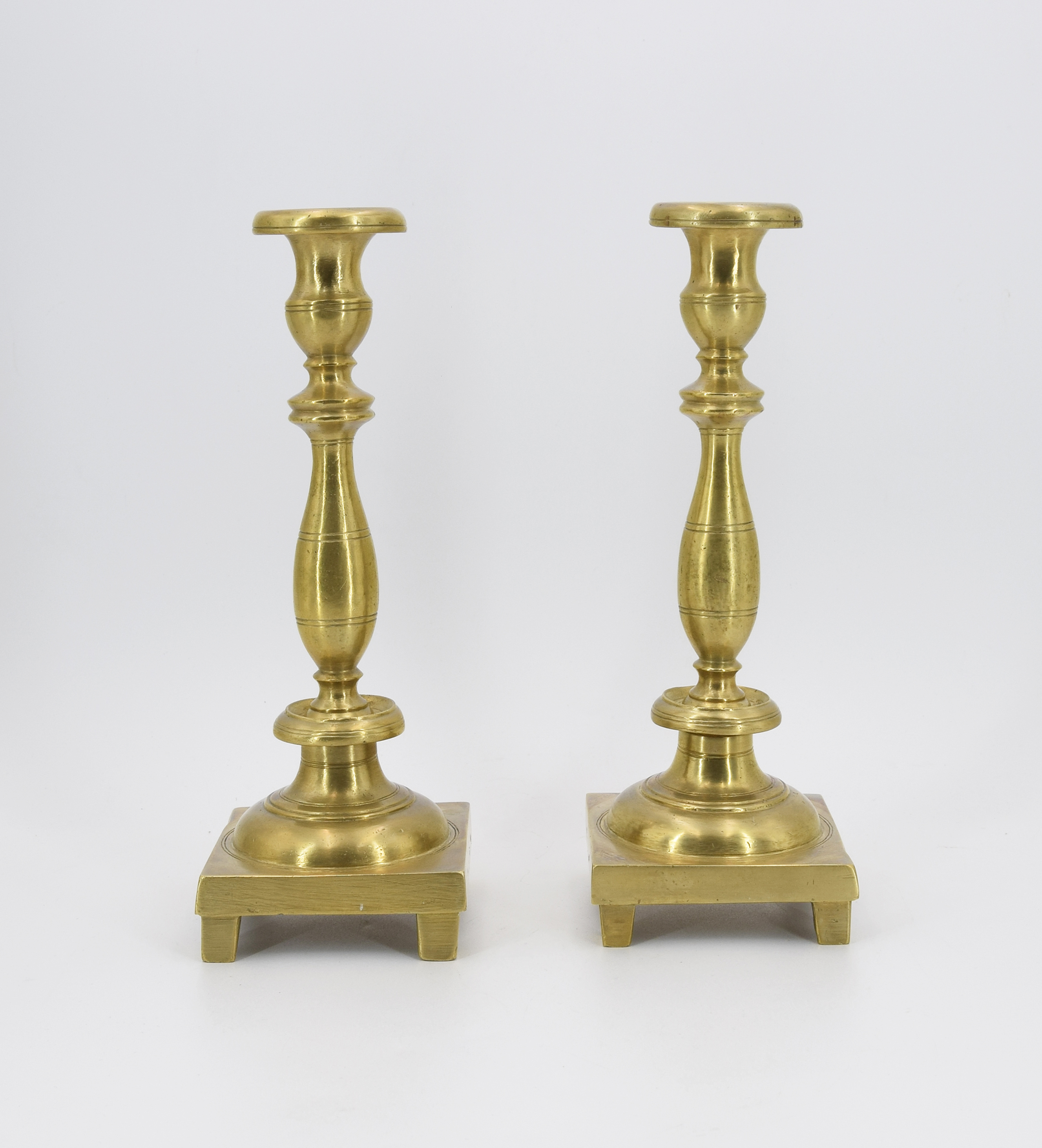 mosiądz odlewany, toczony, podstawa skręcona na gwint; wys. 24 cm;