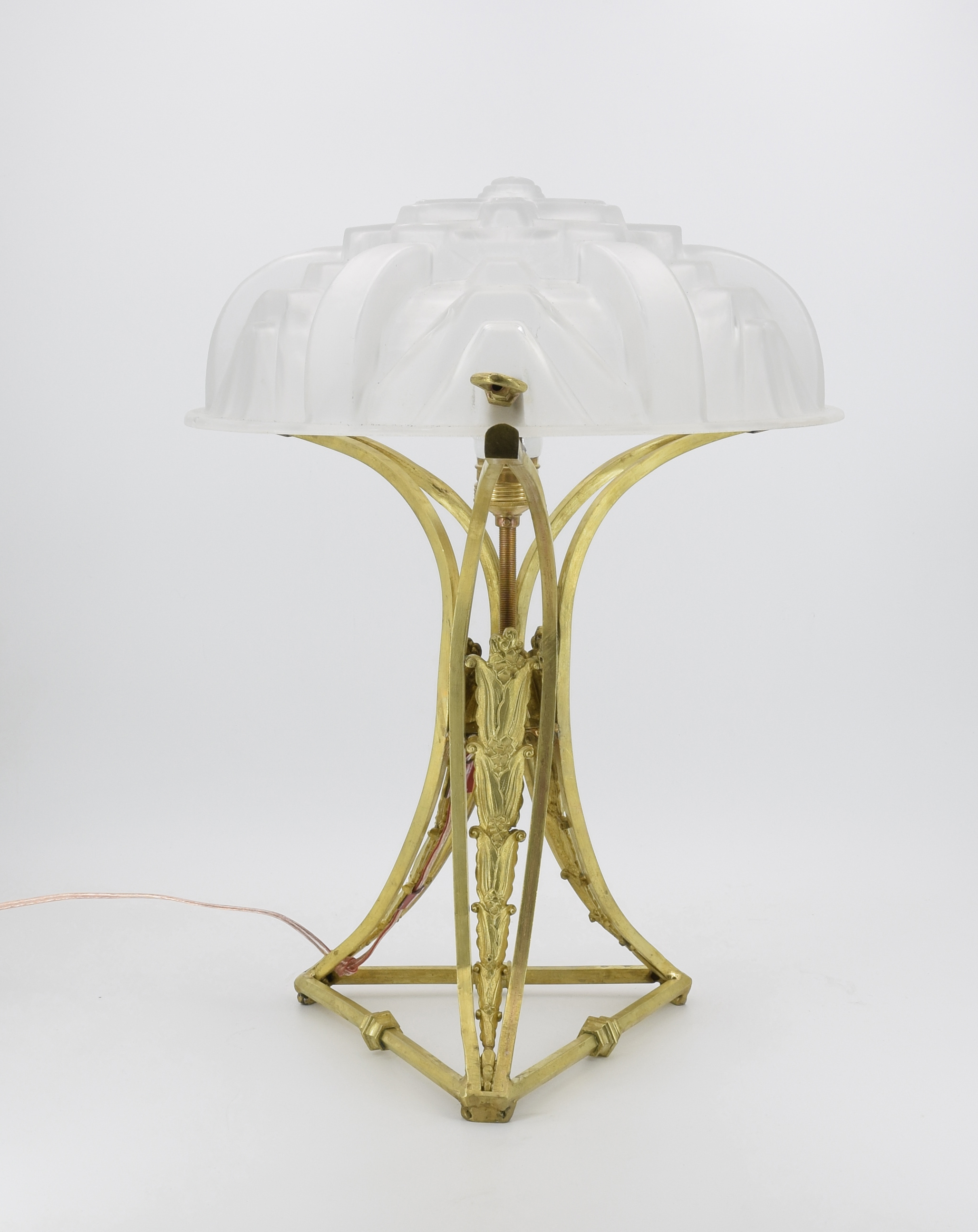 brąz złocony, szkło przezroczyste, matowione; wys. 47 cm;