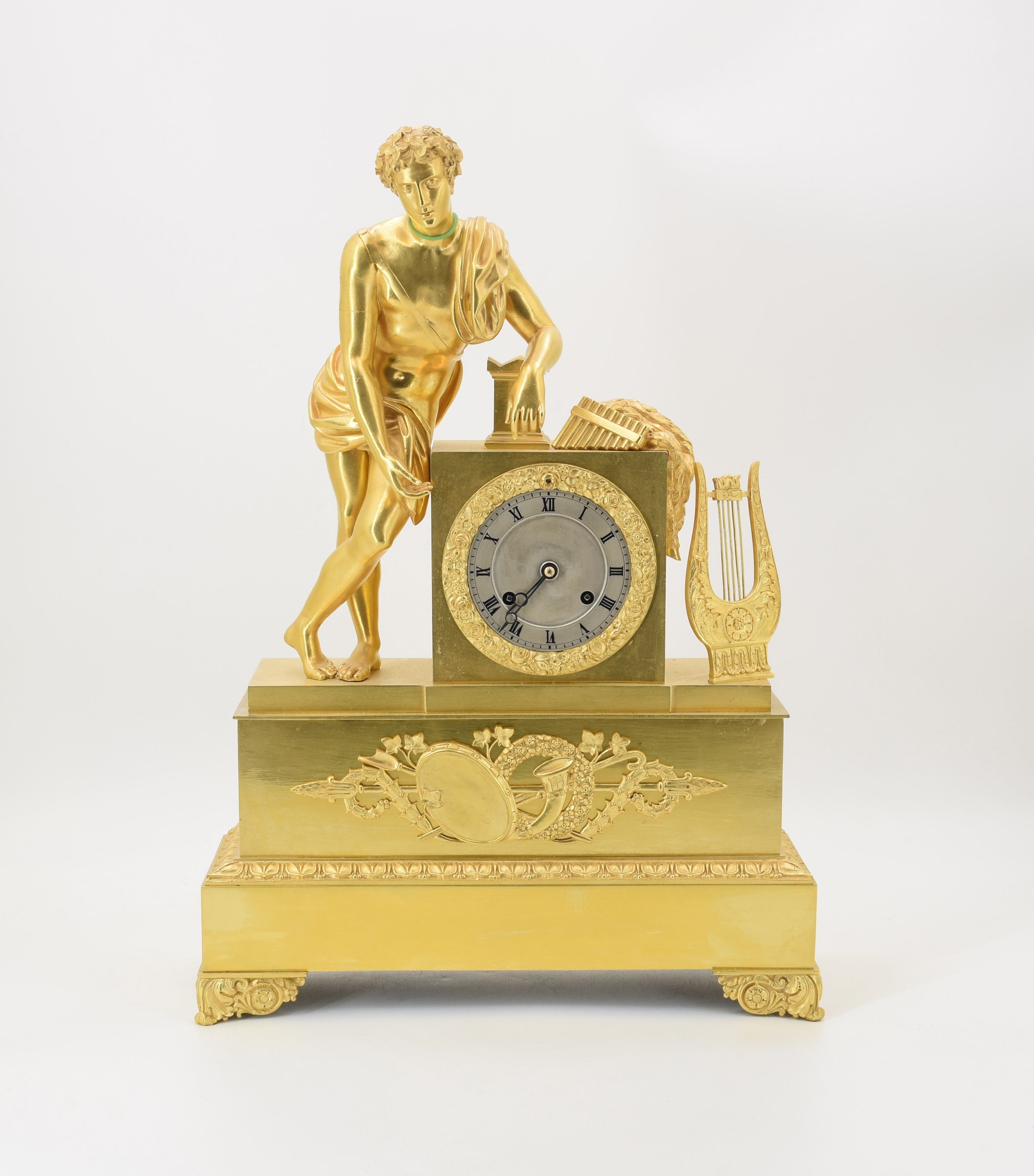 Zegar kominkowy z postacią Apolla