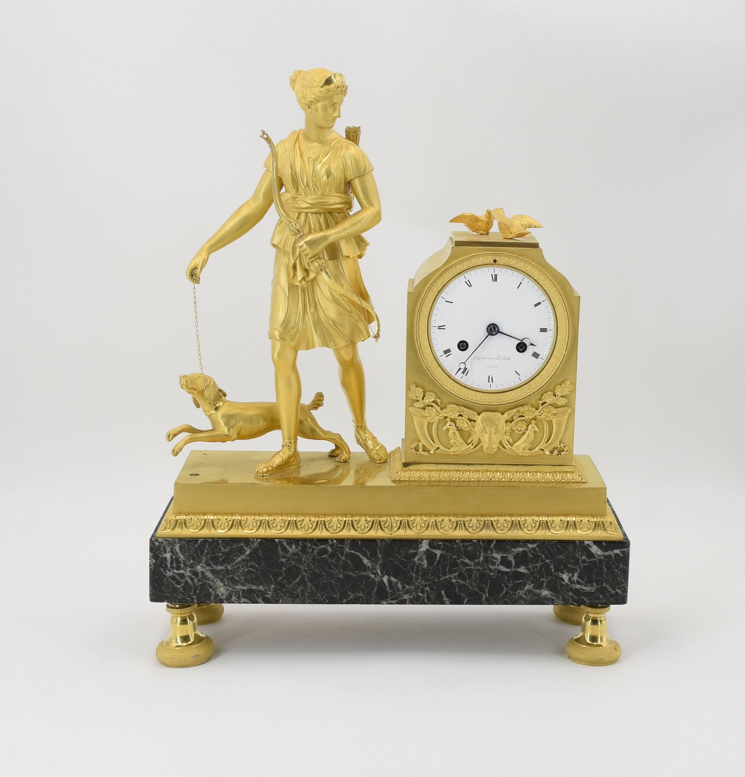 brąz, złocony; żyłkowany, czarny marmur; wys. 40,5 cm; szer. 32 cm; głęb. 11,5 cm;