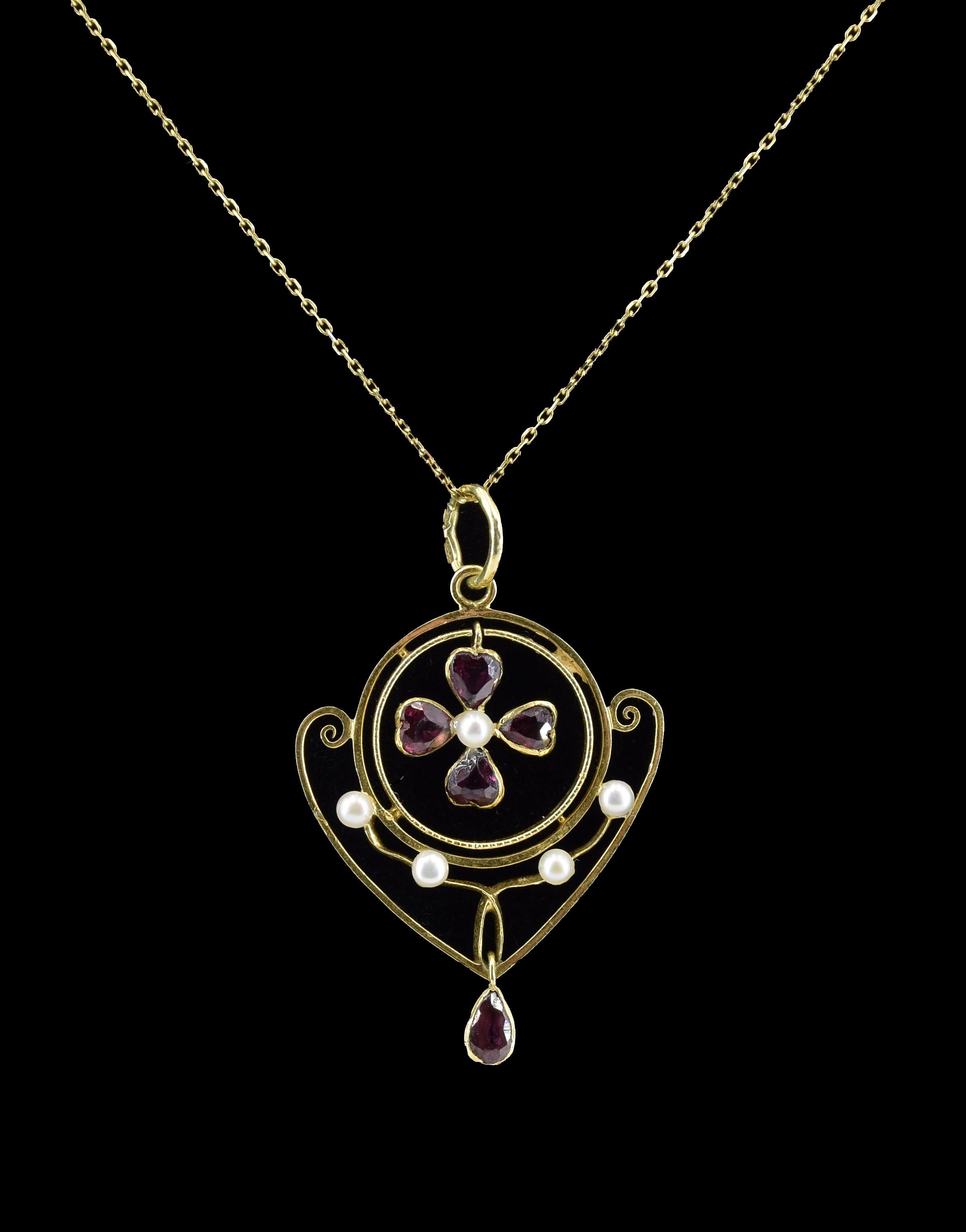 ażurowa kompozycja z 5 szt. turmalinów w szlifie łezka i serce oraz 5 szt. pereł o śr. 2.50 mm,