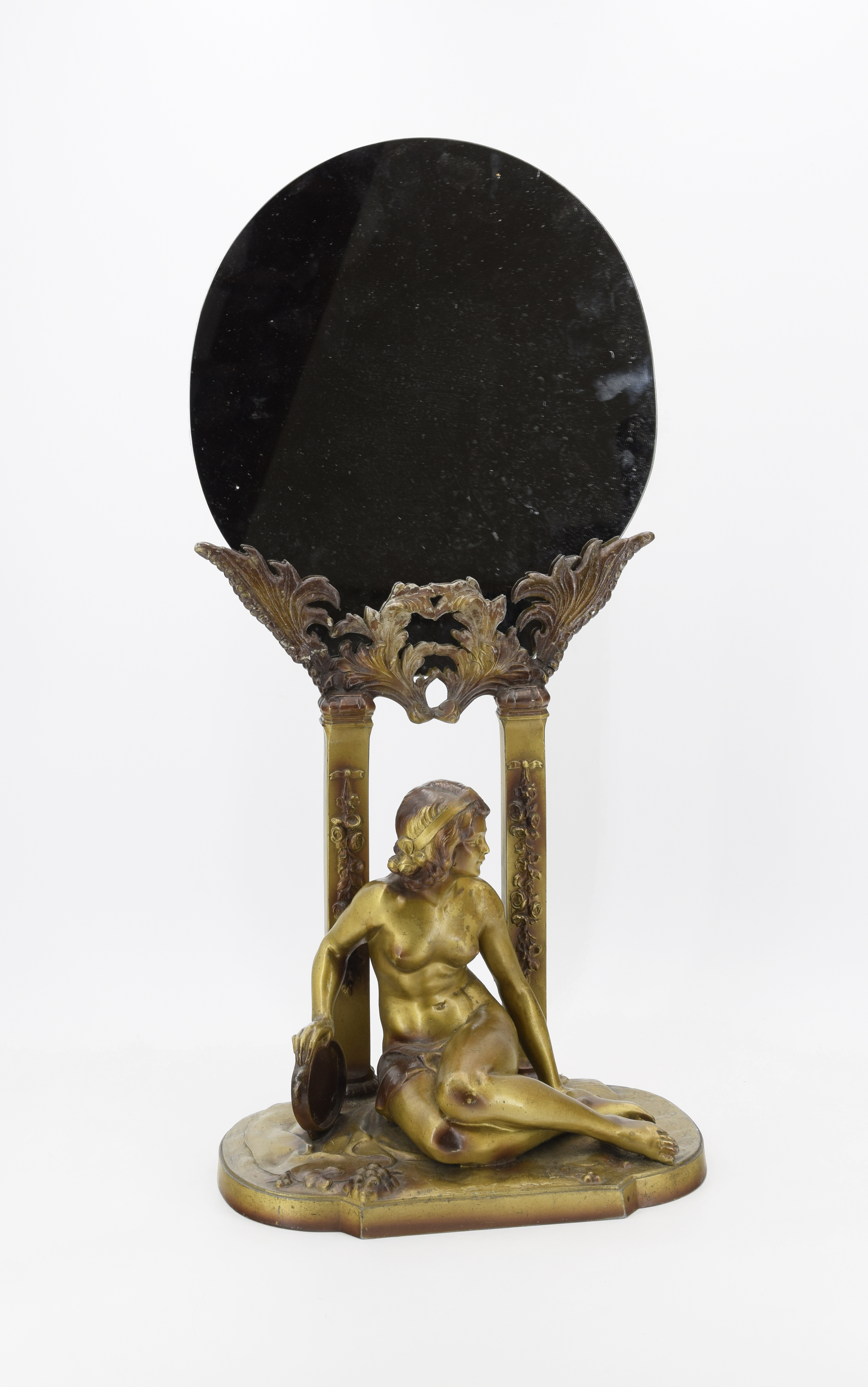 Lustro z figurą kobiety w stylu secesyjnym