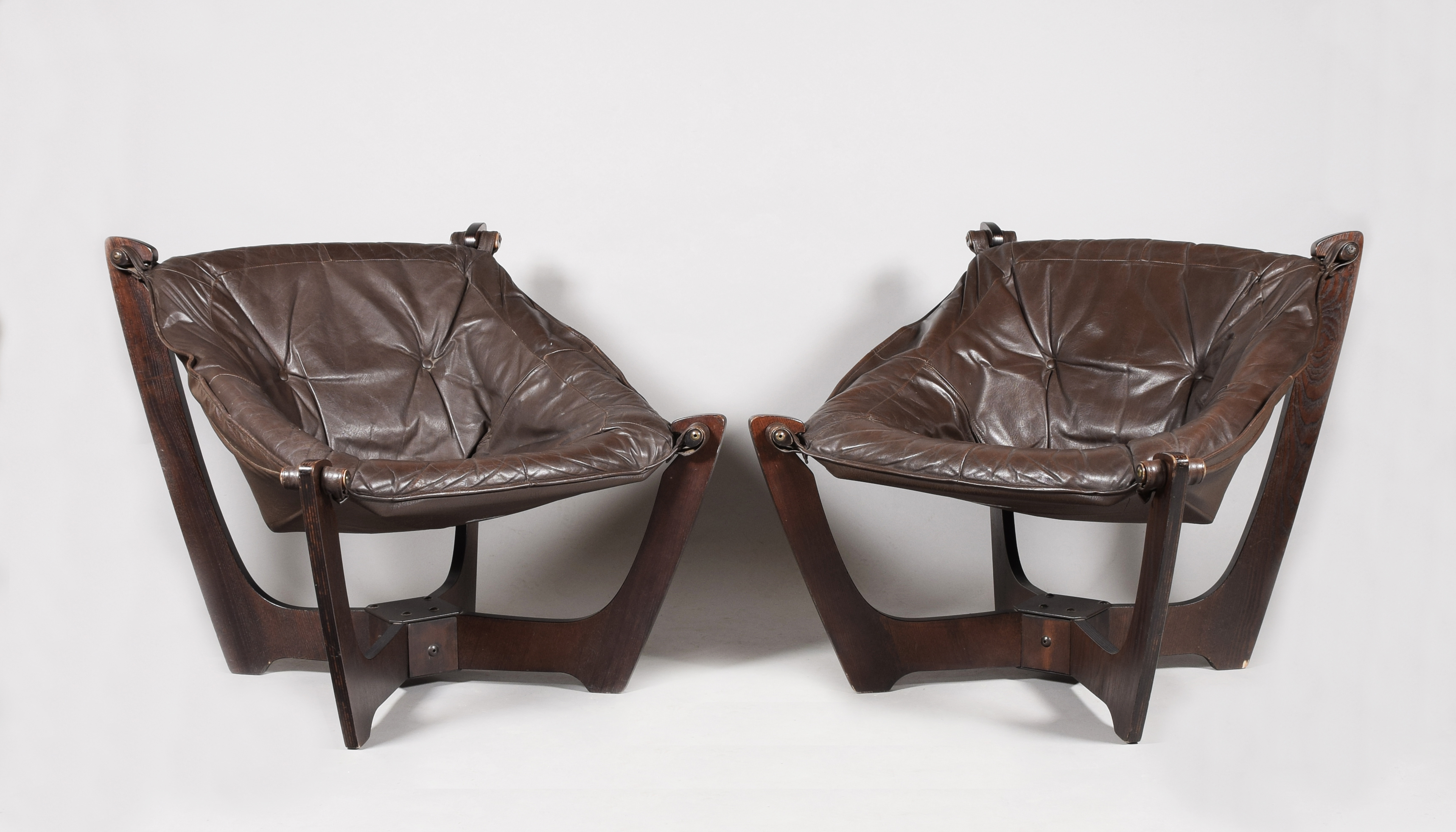 konstrukcja drewniana, siedzisko skórzane; wymiary: 71 x 71 x 74 cm.