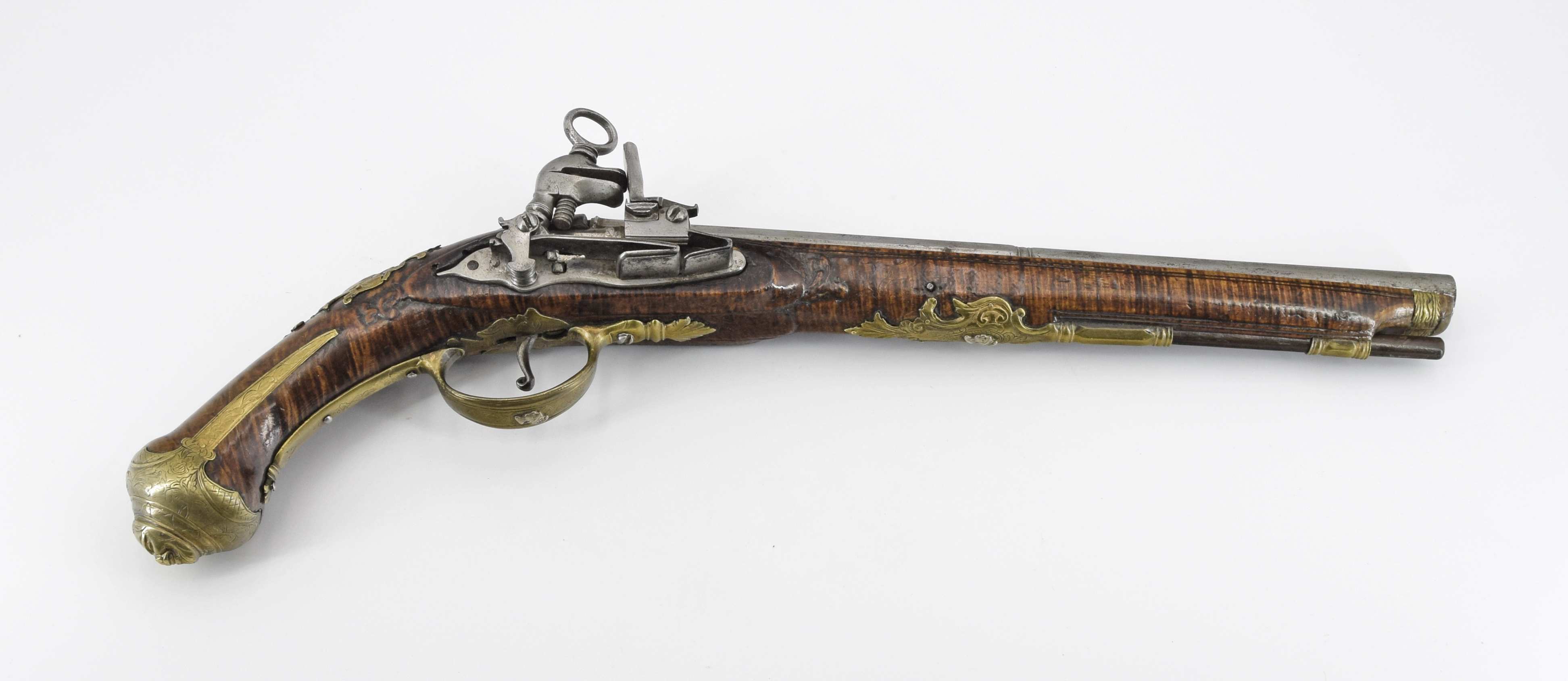 stal, brąz, mosiądz, drewno orzechowe, srebro; dł. całk. 45 cm.