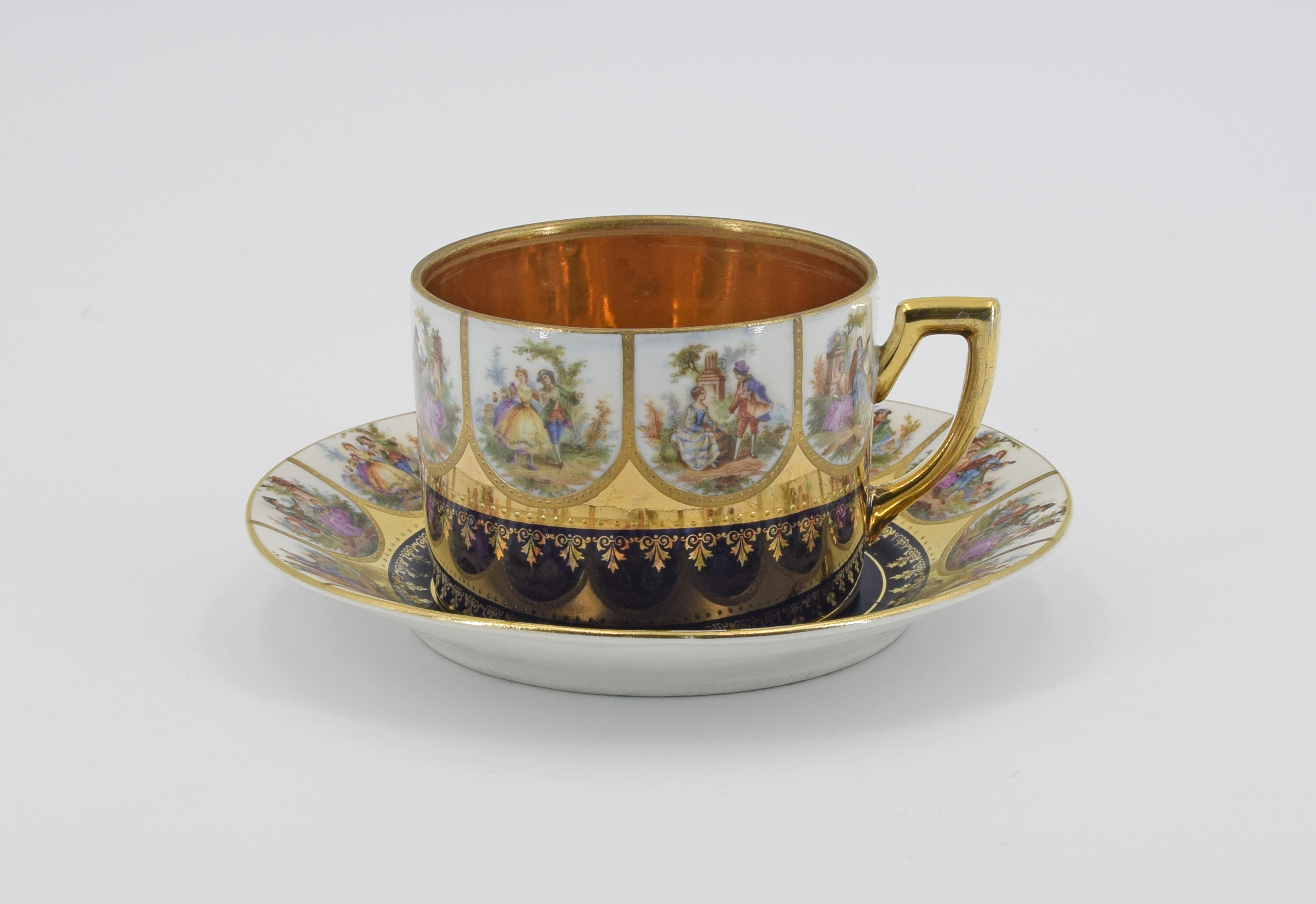 Filiżanka ze spodkiem, ze szlakiem miniatur á la Watteau