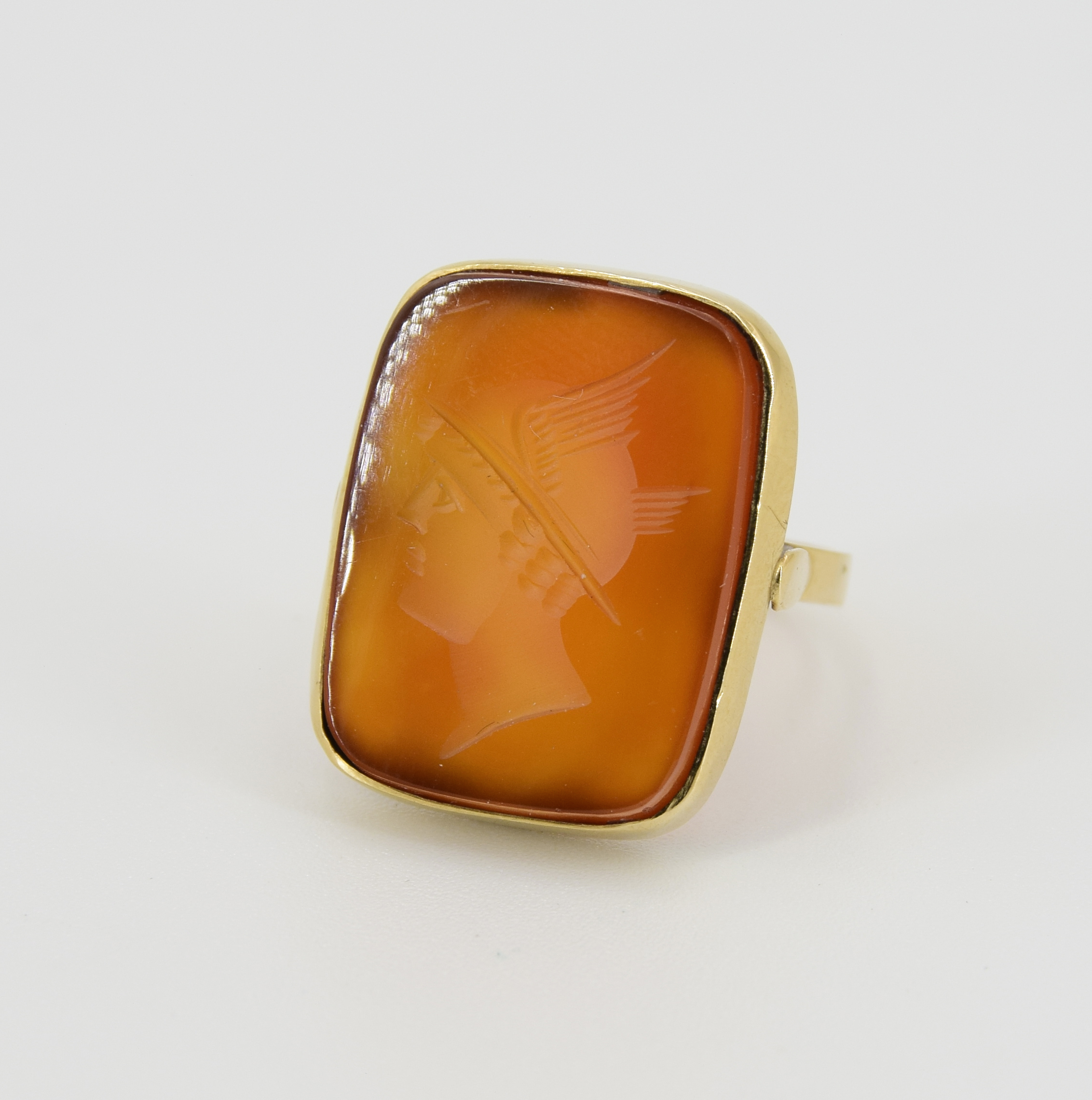 agat o wym. 17.50 x 22.50 mm z grawerowanym popiersiem mitologicznego Hermesa,