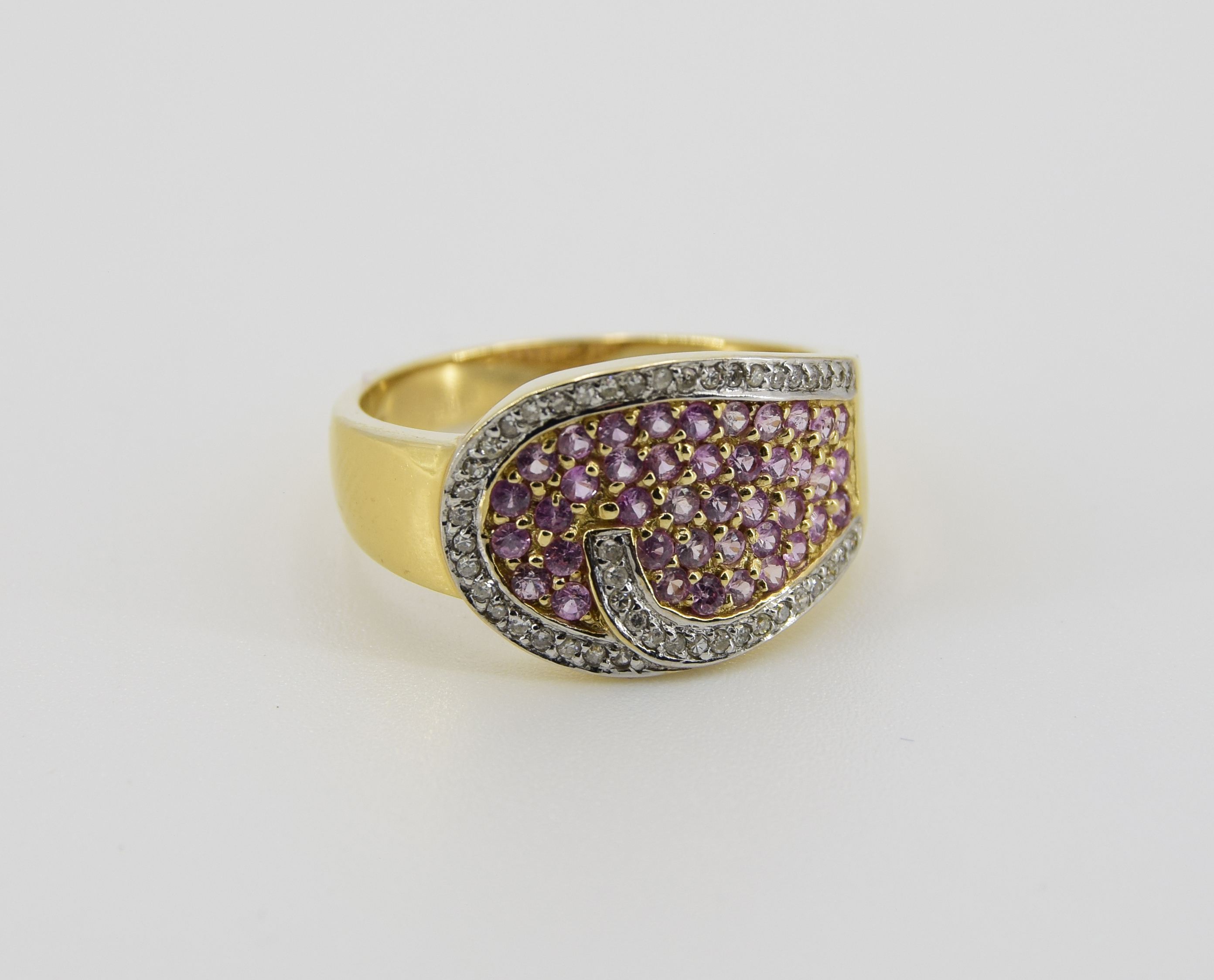 43 szt. różowych szafirów oraz 47 szt. diamentów;
