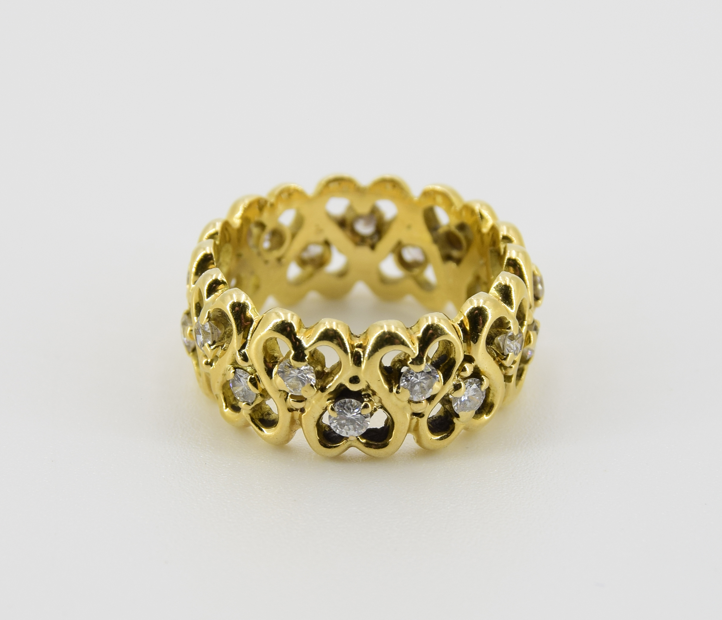 złoto pr. 0.750, masa całkowita 9.210 g., rozm. pierścionka 16.