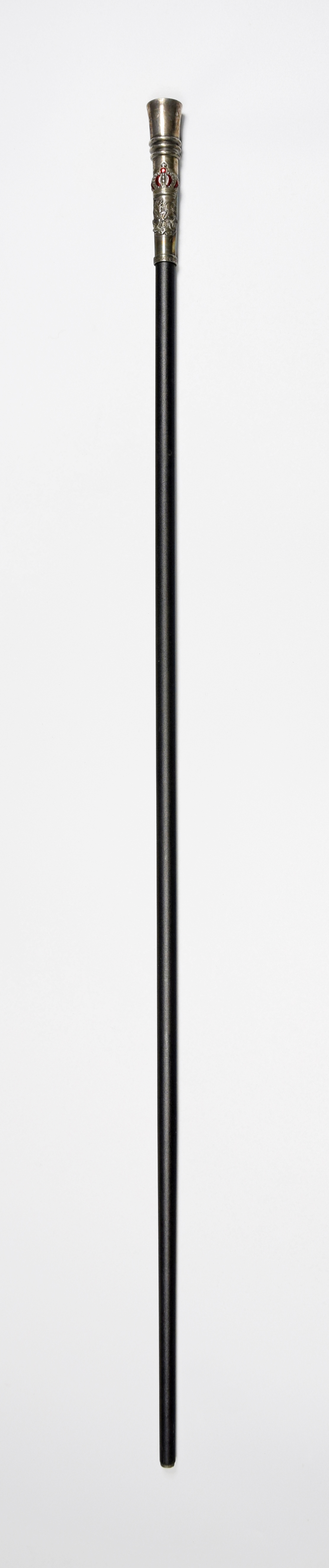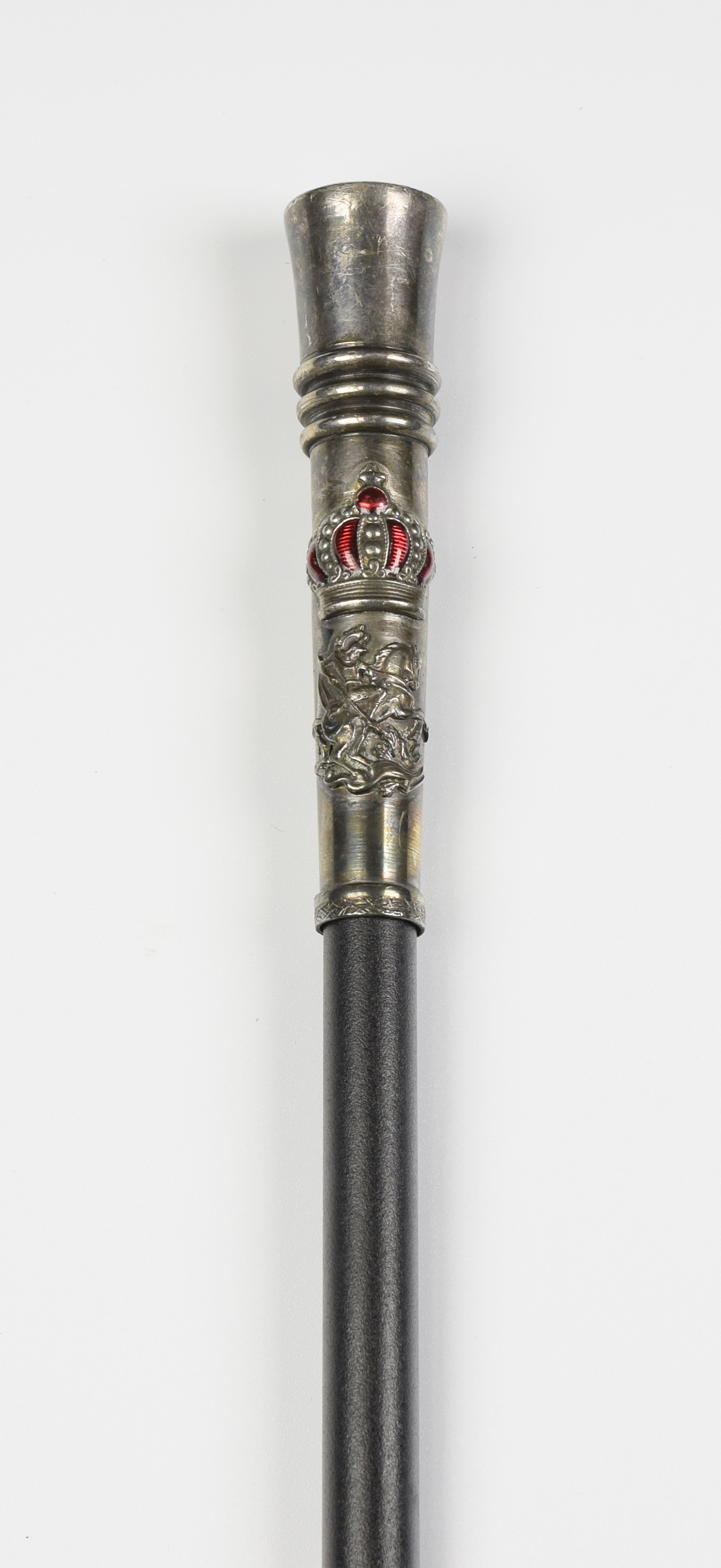 metal czerniony, srebro próby 800, emalia przejrzysta; dł. 91 cm;