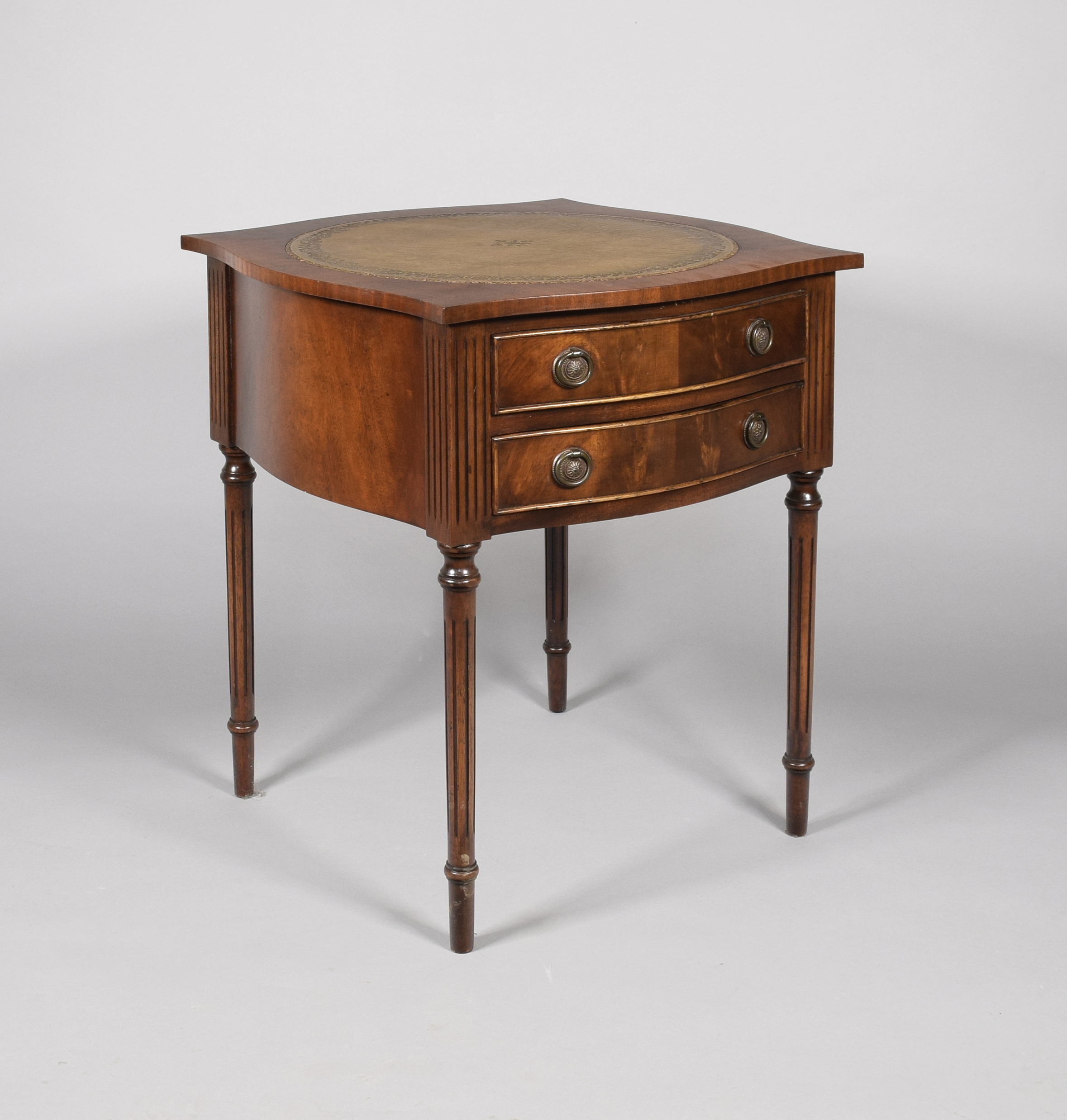 mahoń, skóra, mosiądz; 64 x 48,5 x 48,5 cm.