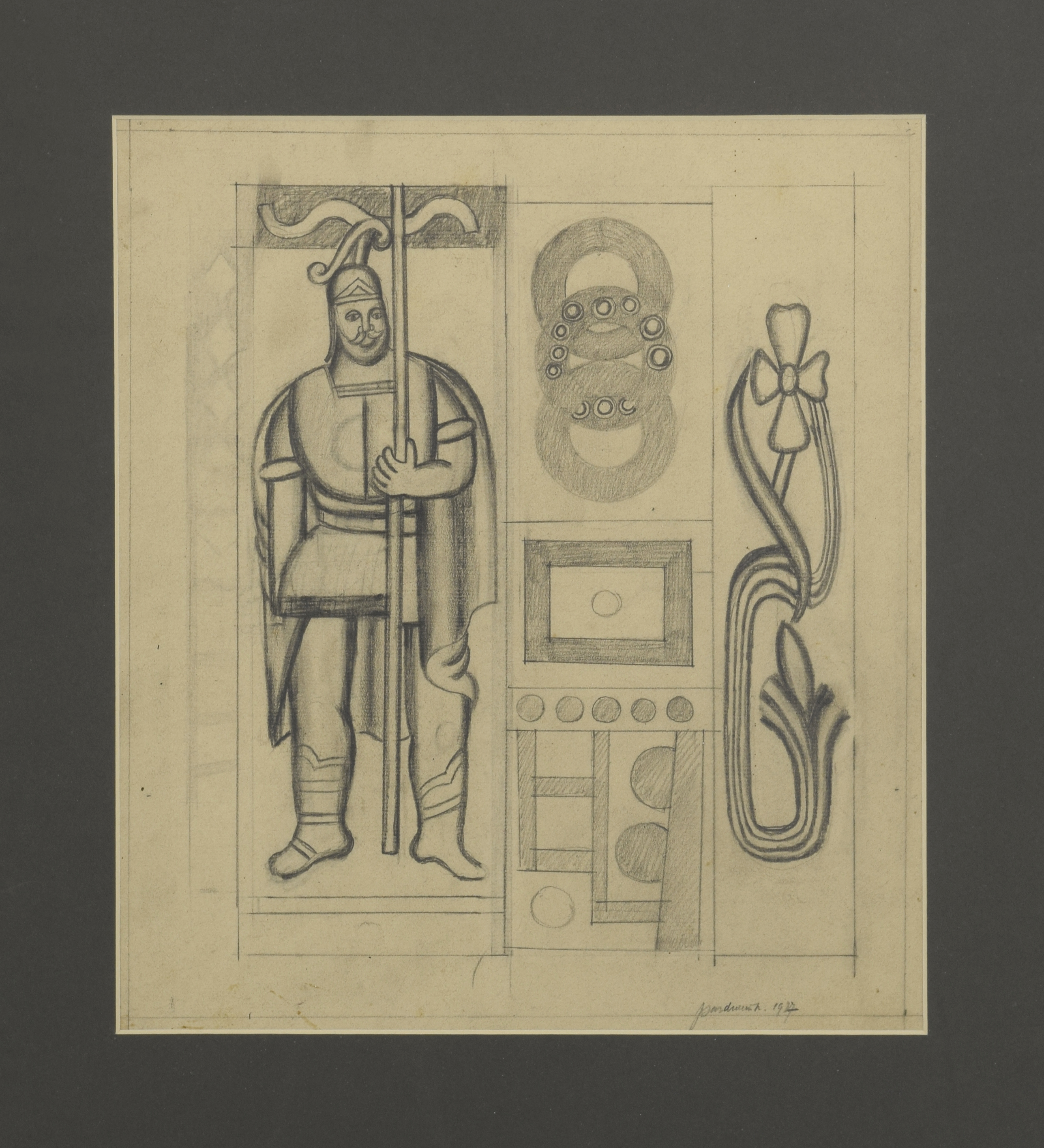 ołówek, papier; 33 x 28,5 cm (w świetle passe-partout);