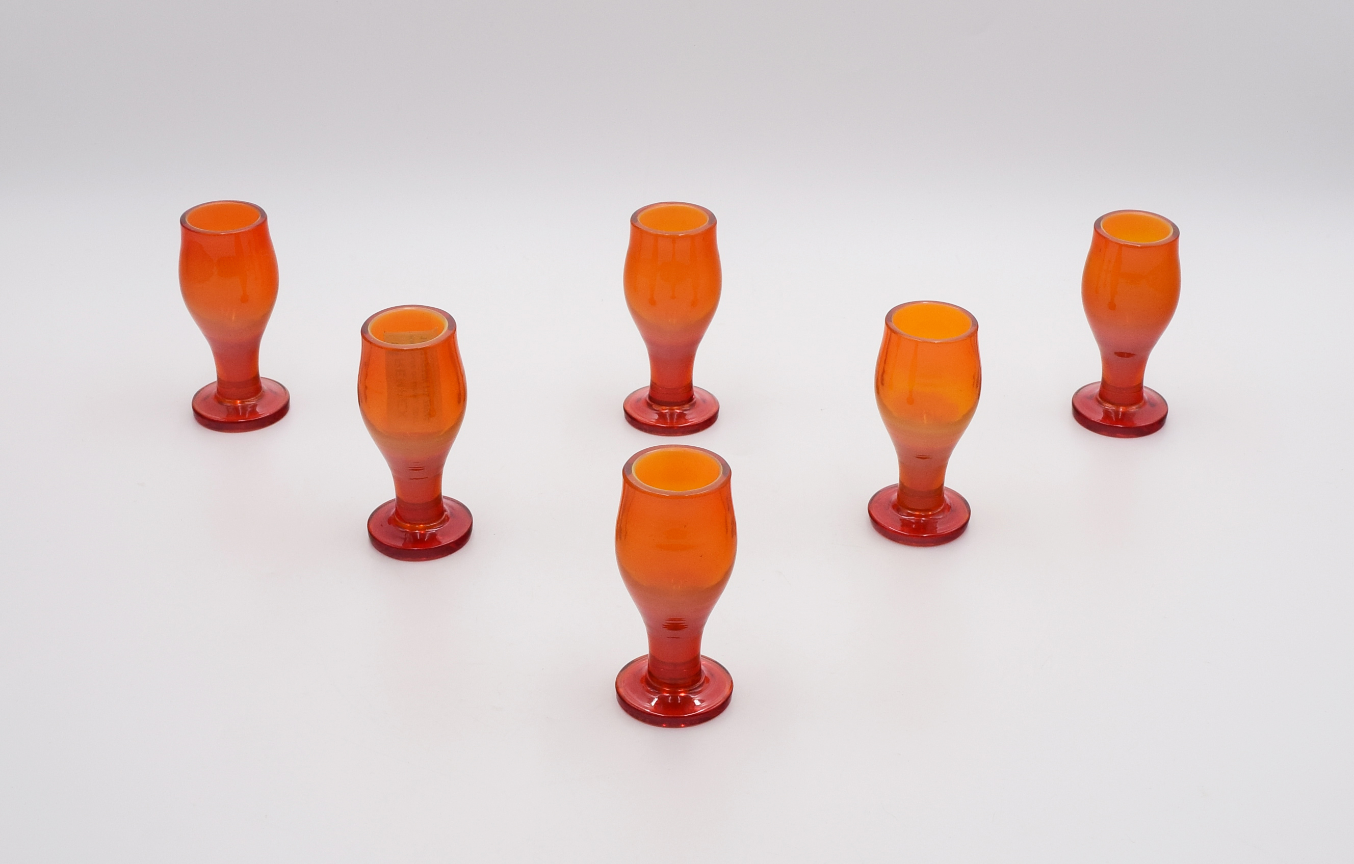 szkło artystyczne użytkowe selenowo – kadmowe, (tycjan żółty, kapowe); wys.: 10 cm;