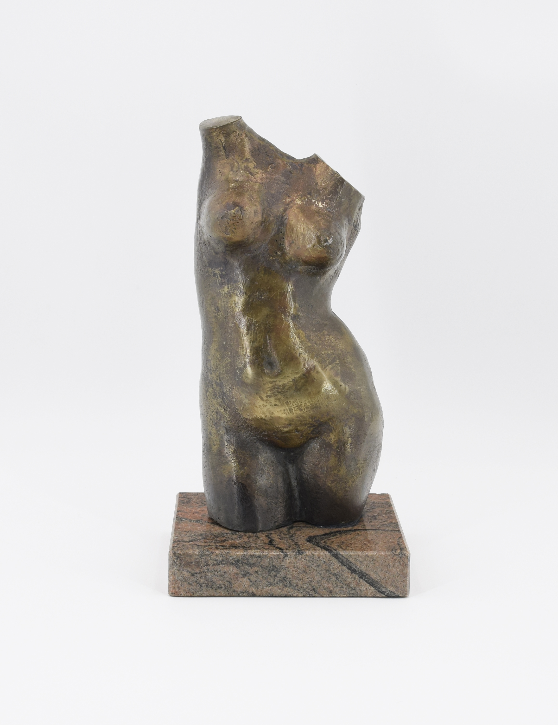 brąz patynowany; kamienna podstawa; wys. całkowita: 28,5 cm;