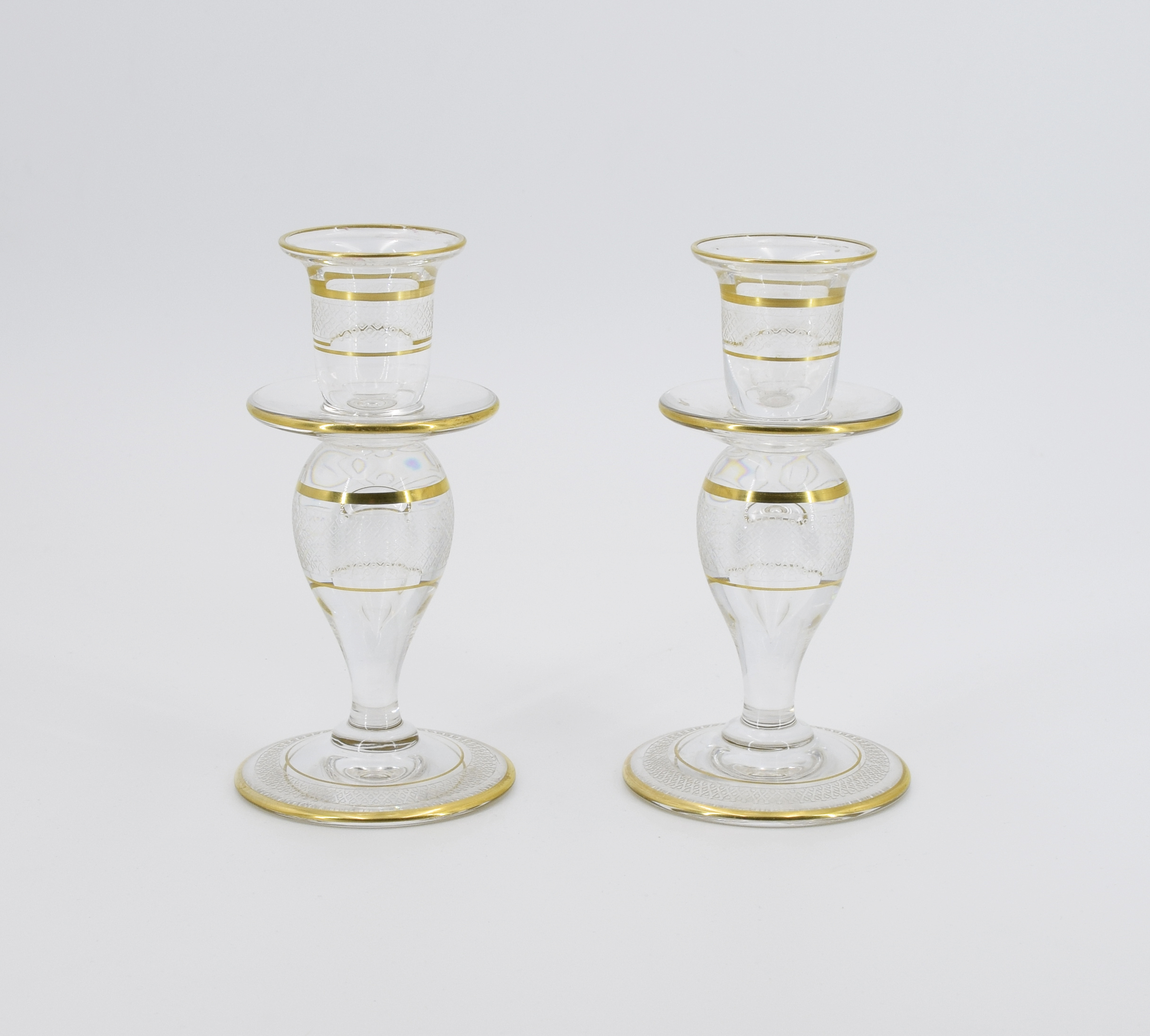 szkło przeźroczyste, bezbarwne, złocenie; wys. 15 cm; sygn. na spodzie w kole: „ST. Louis CRYSTAL FRANCE”.