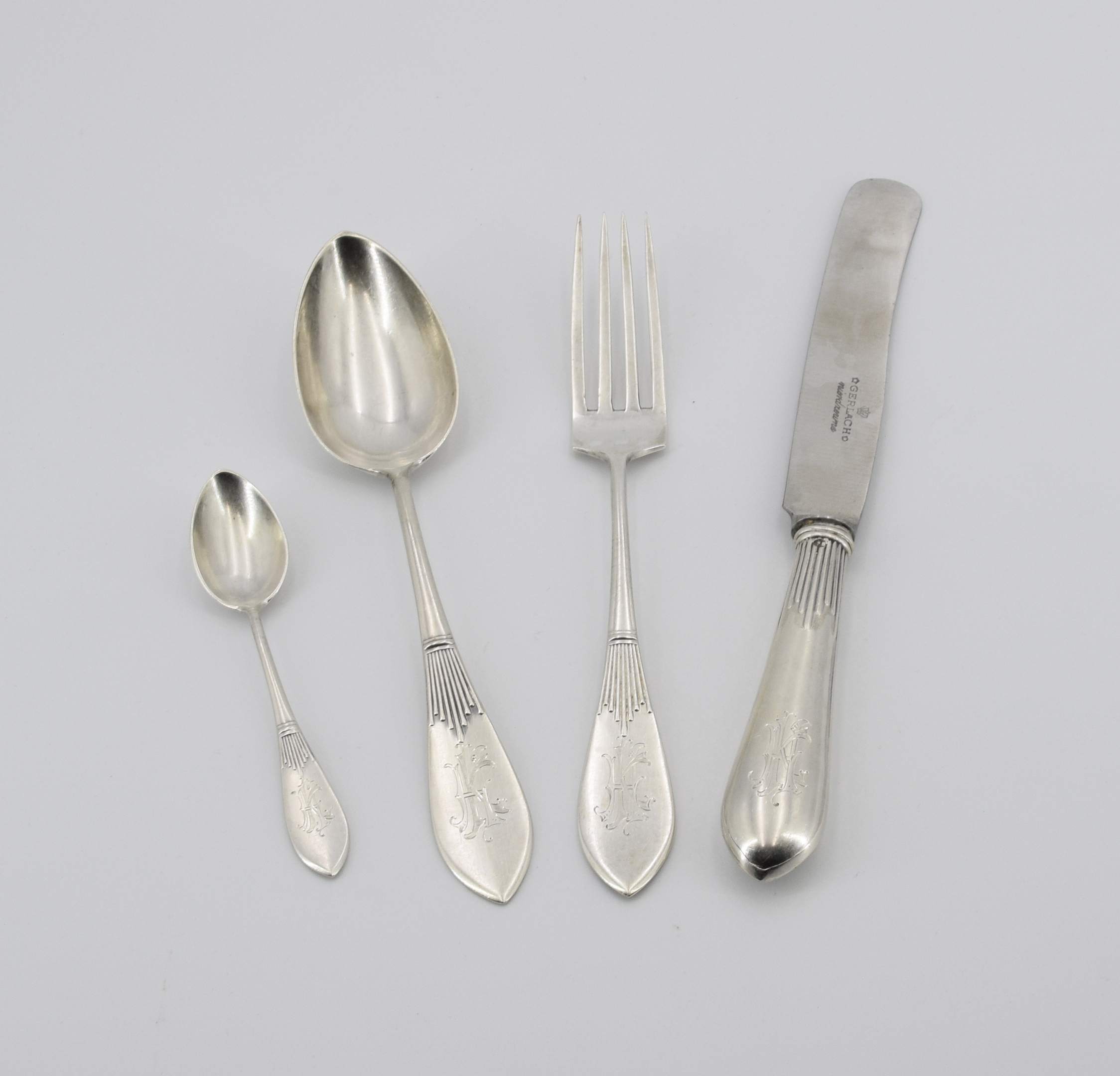srebro próby 84 cechowane; stal nierdzewna cechowana; waga 668 g (bez noży).