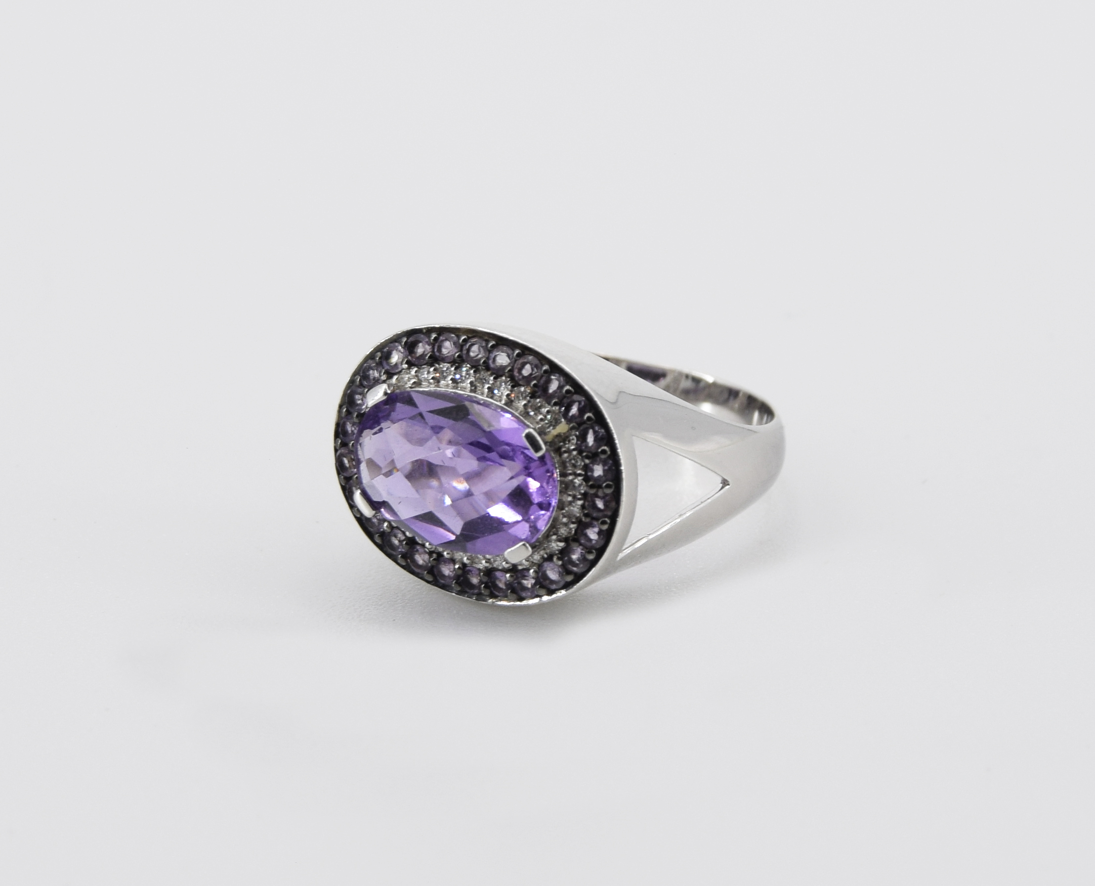 owalny ametyst o masie ok.2.93 ct oraz 26 szt. ametystów oraz 30 szt. okrągłych diamentów;